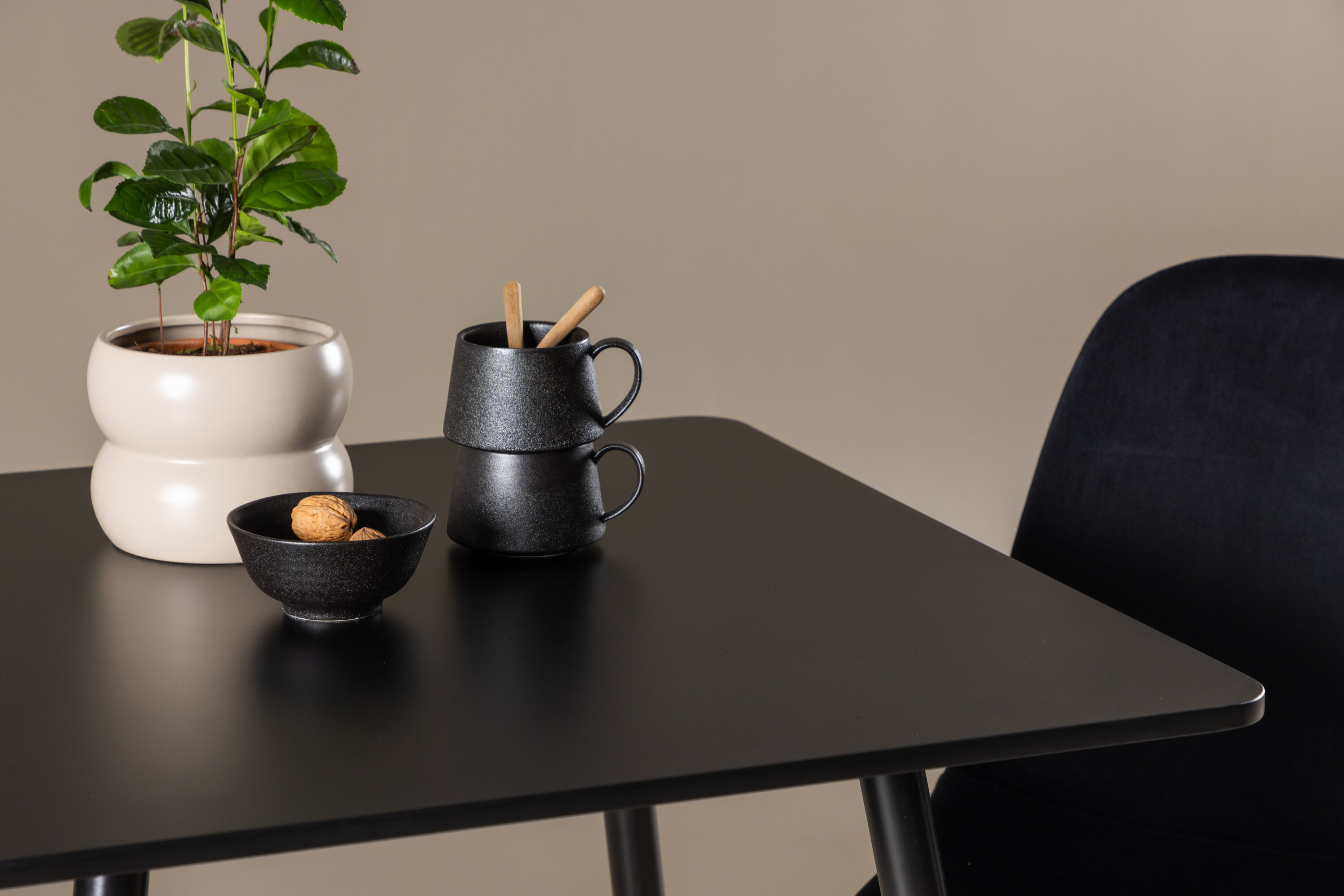 Erstellen Sie einen modernen und einladenden Essbereich mit unserem eleganten Ess-Set, das den eleganten Polar-Tisch mit den luxuriösen Polar-Stühlen kombiniert. Dieses Ess-Set eignet sich sowohl für kleine Mahlzeiten als auch für gemütliche Abendessen und verleiht Ihrem Esszimmer oder Ihrer Küche eine raffinierte und harmonische Atmosphäre. Der Polare Esstisch aus MDF hat eine elegante schwarze Farbe, die Ihrem Zuhause ein modernes und elegantes Gefühl verleiht. Mit den Abmessungen von 75x75 cm bietet der Tisch eine kompakte und dennoch geräumige Oberfläche für Essen und Unterhaltung und ist somit ideal für kleinere Räume oder intime Essbereiche. Die robuste Konstruktion des Tisches sorgt für langanhaltenden Einsatz und Stabilität. Die beiden Polar-Stühle ergänzen den Tisch perfekt mit ihren eleganten, mit schwarzem Samt gepolsterten Sitzen. Diese Stühle bieten sowohl Komfort als auch Stil und sind daher ideal für lange, angenehme Mahlzeiten. Ihr modernes Design mit hohen Rückenlehnen und weichen Sitzen verleiht Ihrem Esszimmer oder Ihrer Küche eine raffinierte und moderne Note. Dieses Ess-Set ist eine perfekte Kombination aus Ästhetik und Funktionalität und damit eine ausgezeichnete Wahl für diejenigen, die einen eleganten und komfortablen Essbereich in einem kleineren Format suchen. Verbessern Sie Ihr Zuhause mit der Kombination aus Polartisch und Polar-Stühlen und schaffen Sie einen Ort, an dem Erinnerungen und Freude geteilt werden.