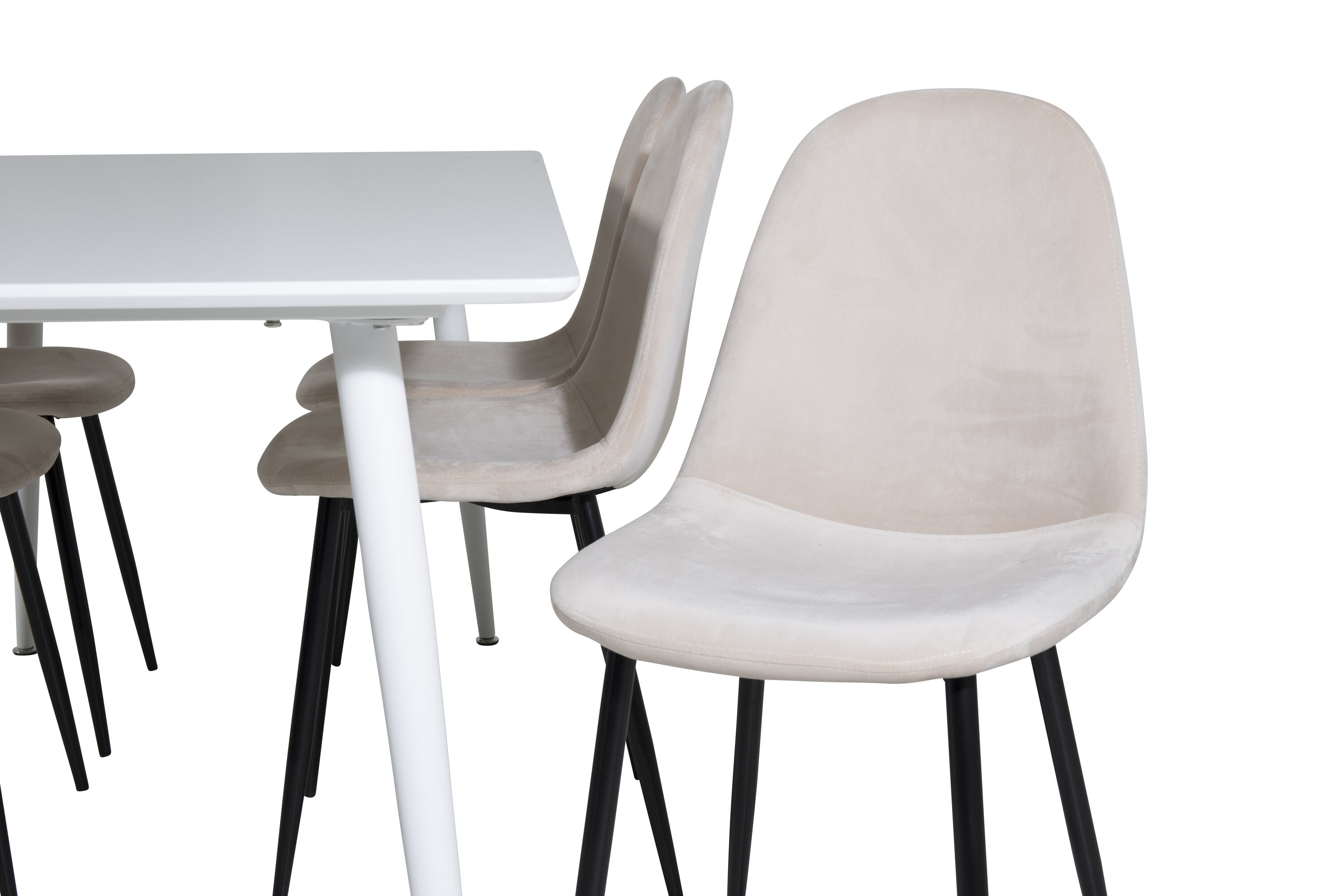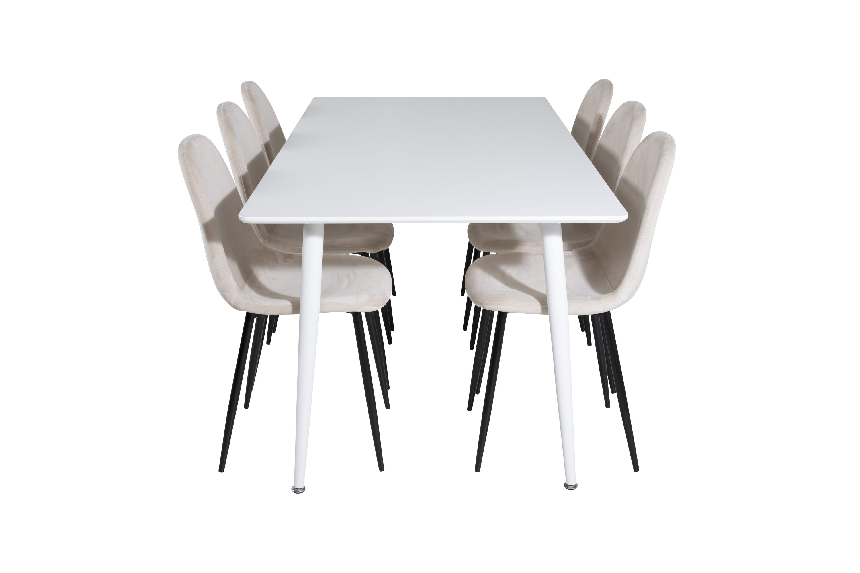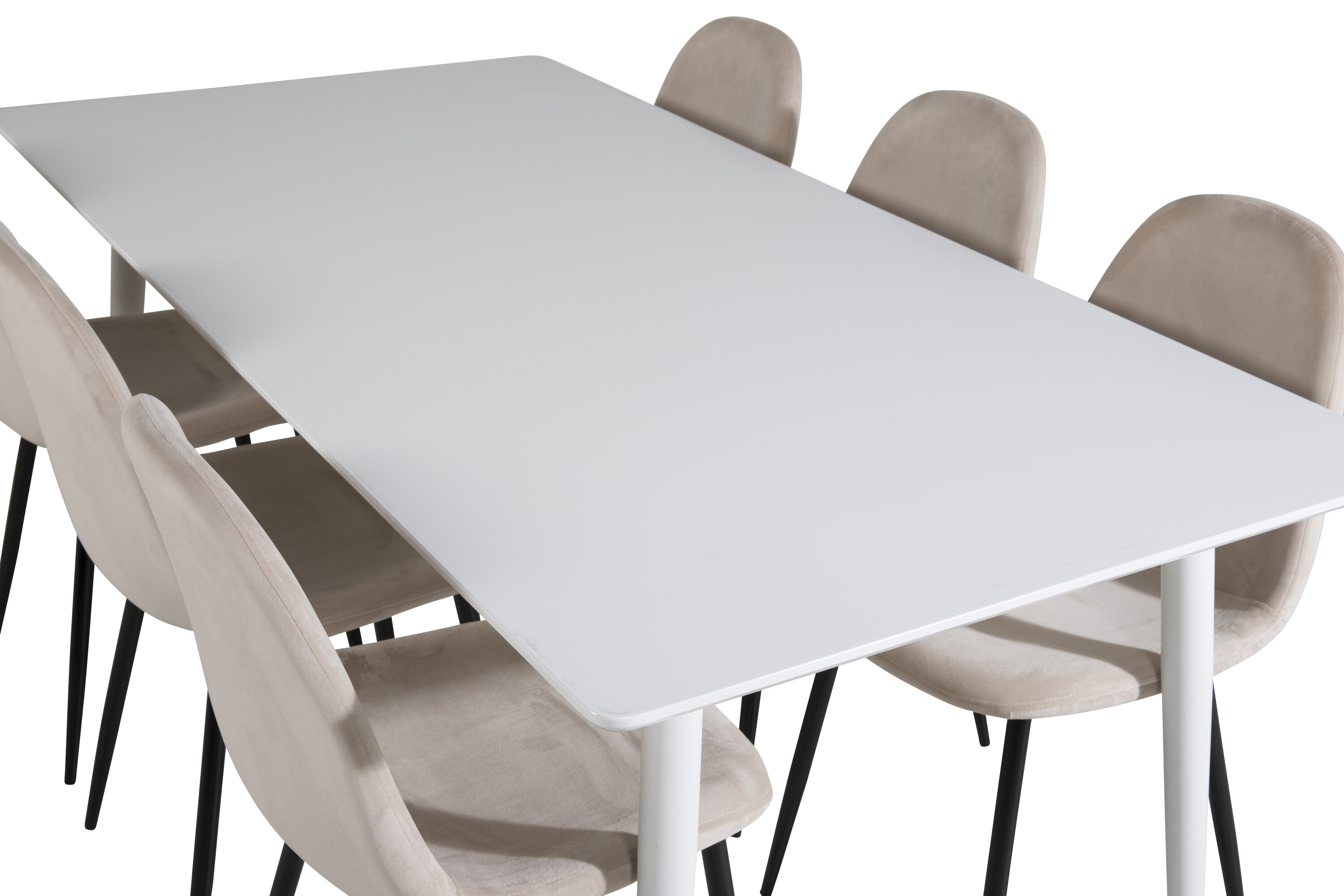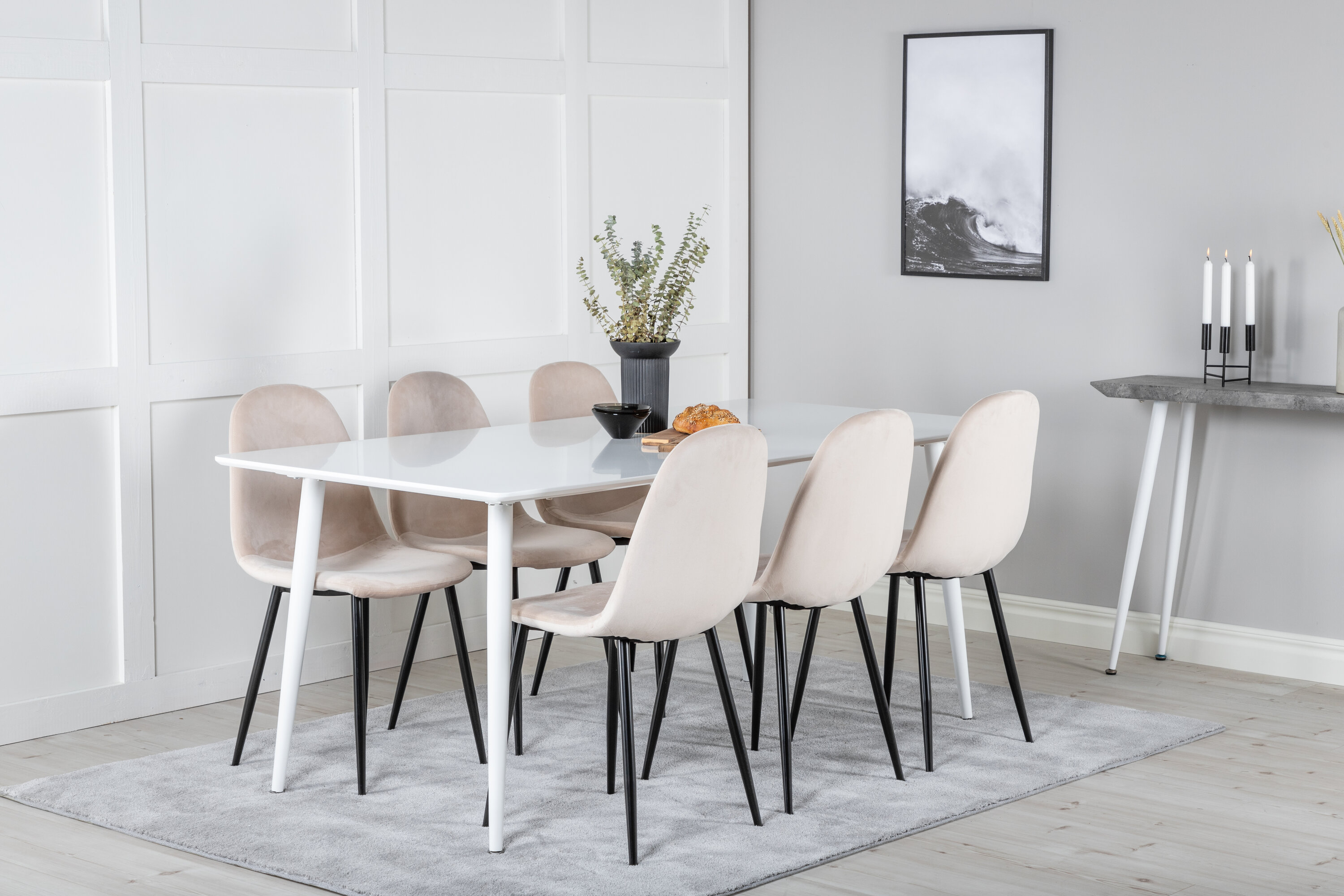Eine helle und belebende Lebensmittelgruppe mit einem modernen Gefühl! Hier wird der Esstisch Polar im klassischen Stil mit unseren schönen Samtstühlen der Serie Polar kombiniert. Sinken Sie in diese einladende und stilvolle Essensgruppe für ein langes Abendessen mit Familie und Freunden!