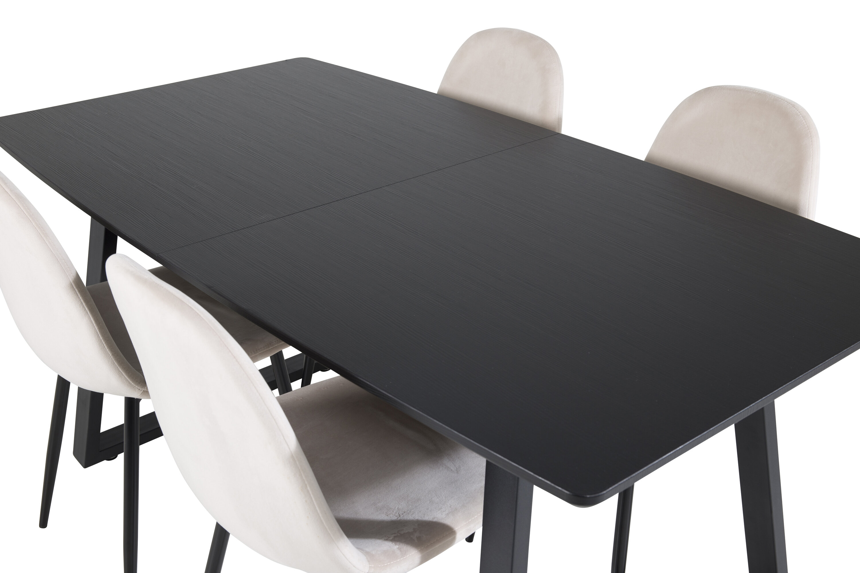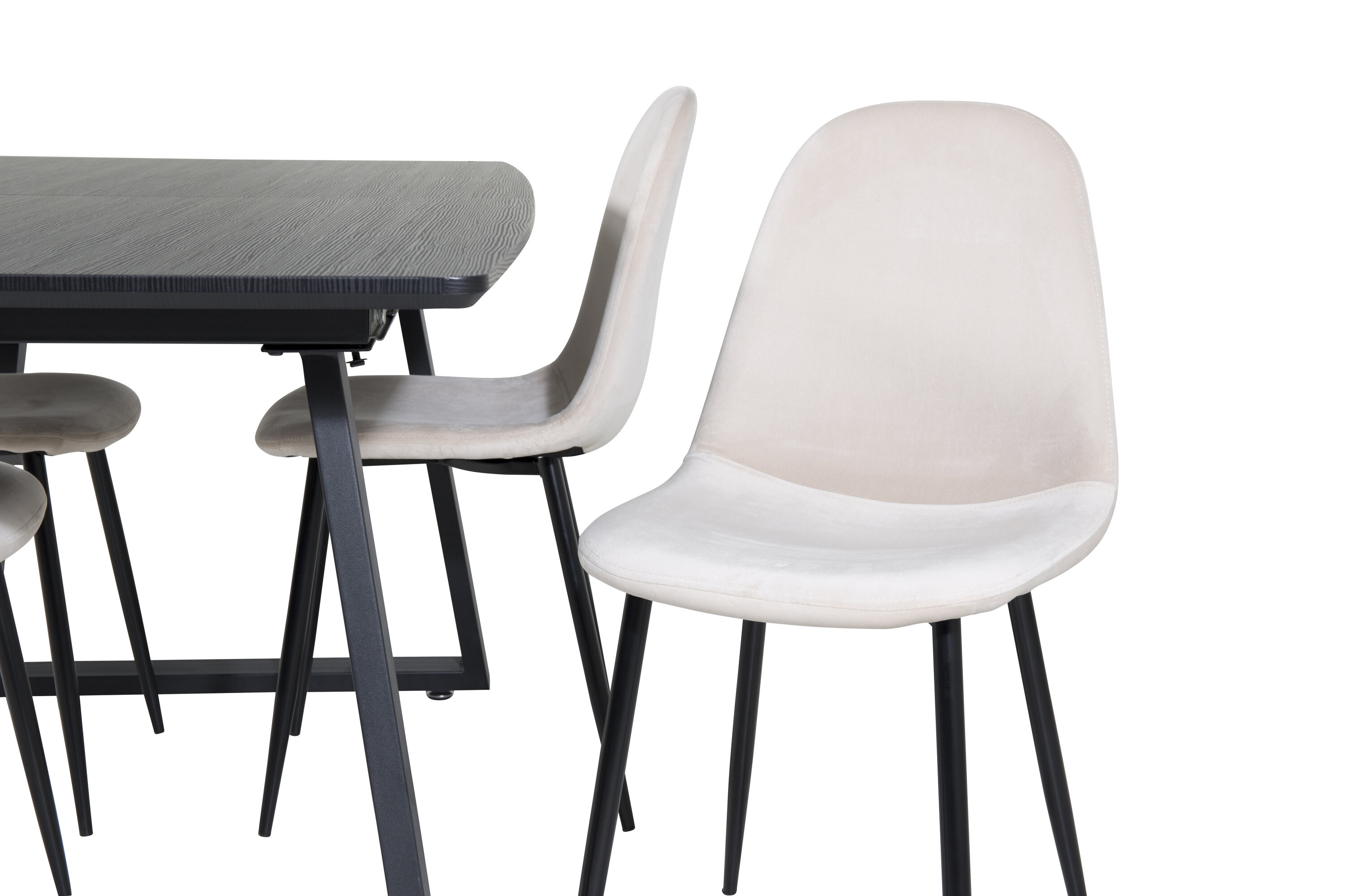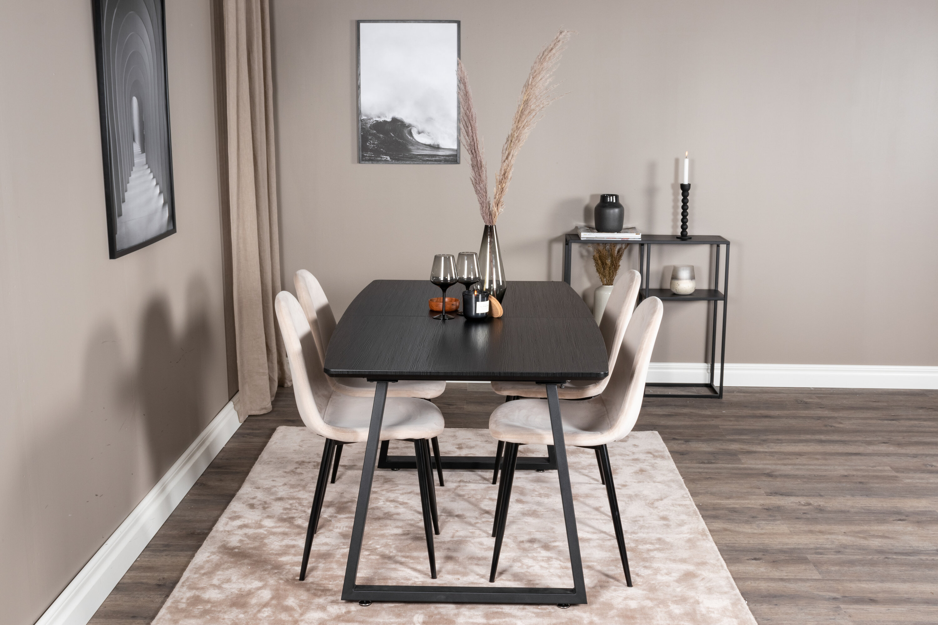 Unser beliebter Esstisch Inca in eleganter schwarzer Tischplatte lässt sich perfekt mit komfortablen Samtstühlen der Polar-Serie kombinieren. Eine stilvolle Foodgruppe in zeitloser Farbskala und mit modernem Feeling - ist für einen gemütlichen Alltag genauso gut wie für ein schönes Festmahl.