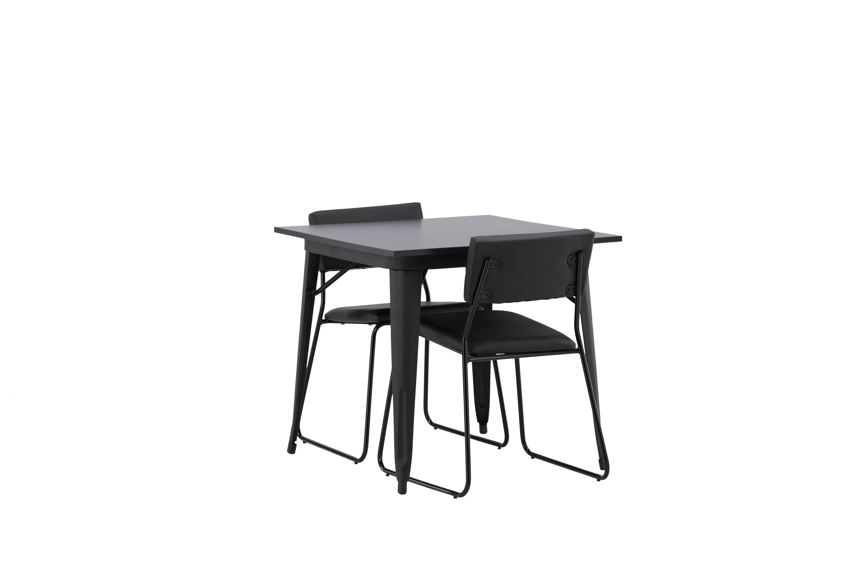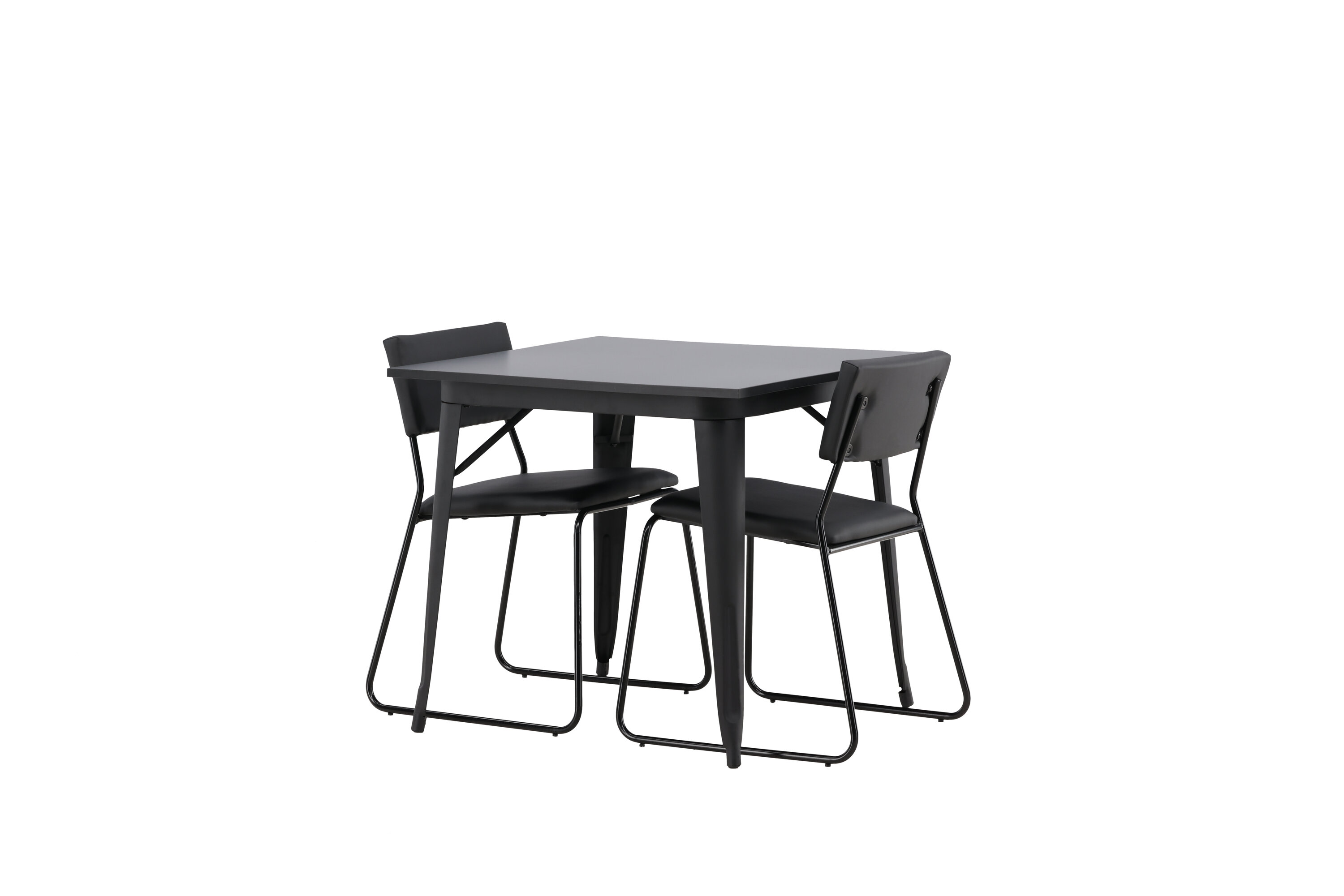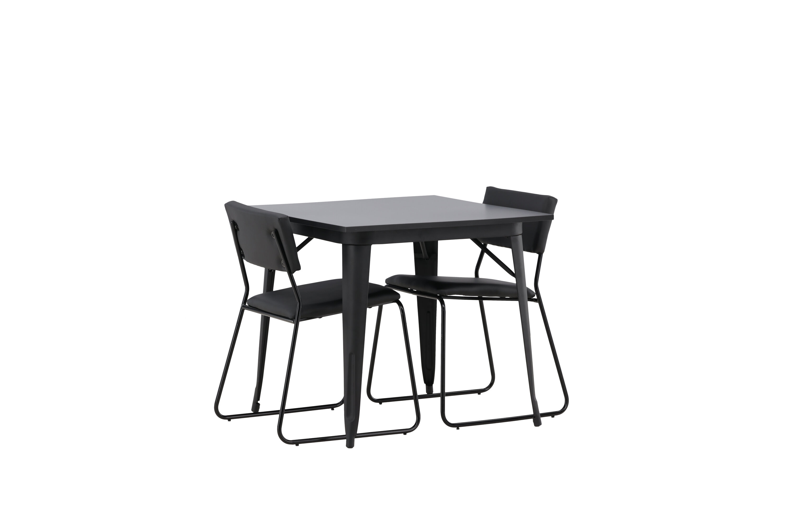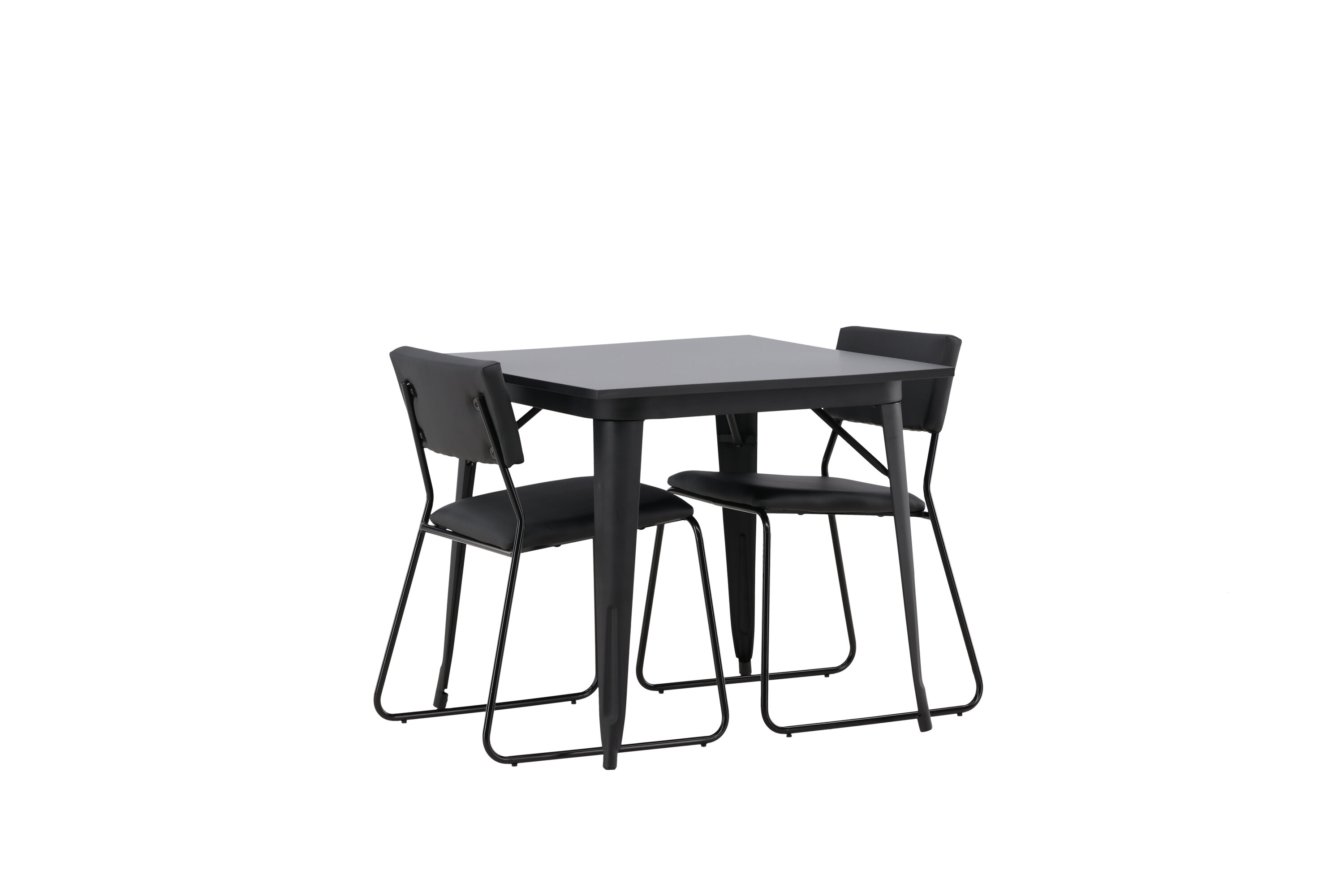 Eine gepflegte Essgruppe, die perfekt in die kleinere Küche passt! Dieser Esstisch aus der Tempe-Serie hat ein klassisches, quadratisches Design und eine zeitlose schwarze Farbe. Die Tischplatte ist aus schwarzem MDF und die Beine aus schwarzem Metall. Hier in geschmackvoller Kombination mit zwei Esszimmerstühlen aus der Kenth-Serie. Der Stuhl hat ein minimalistisches, modernes Design, das ein luftiges Gefühl im Raum erzeugt. Rückenlehne und Sitz sind aus schwarzem PU-Leder und Polyester und die schmalen Stuhlbeine aus Eisen. Kreieren Sie einen charmanten und modernen Hingucker in Ihrem Wohnzimmer!