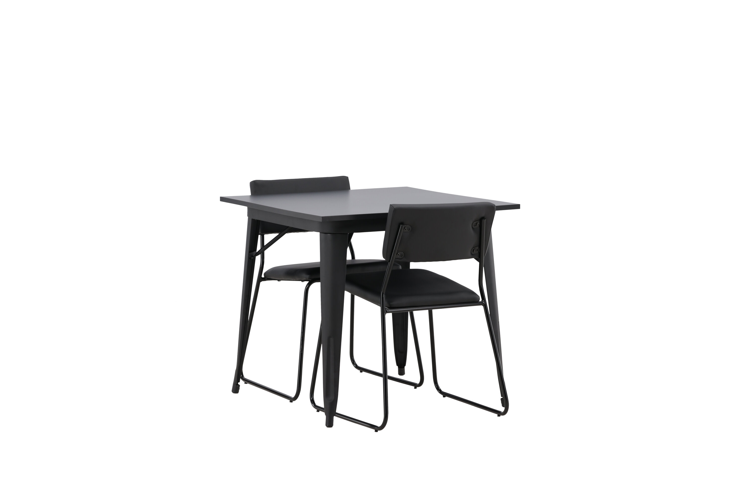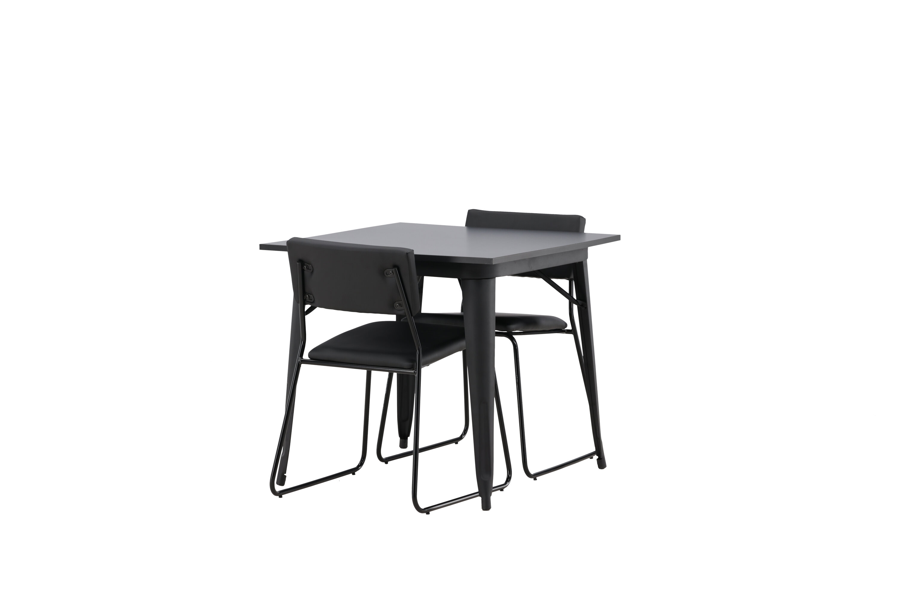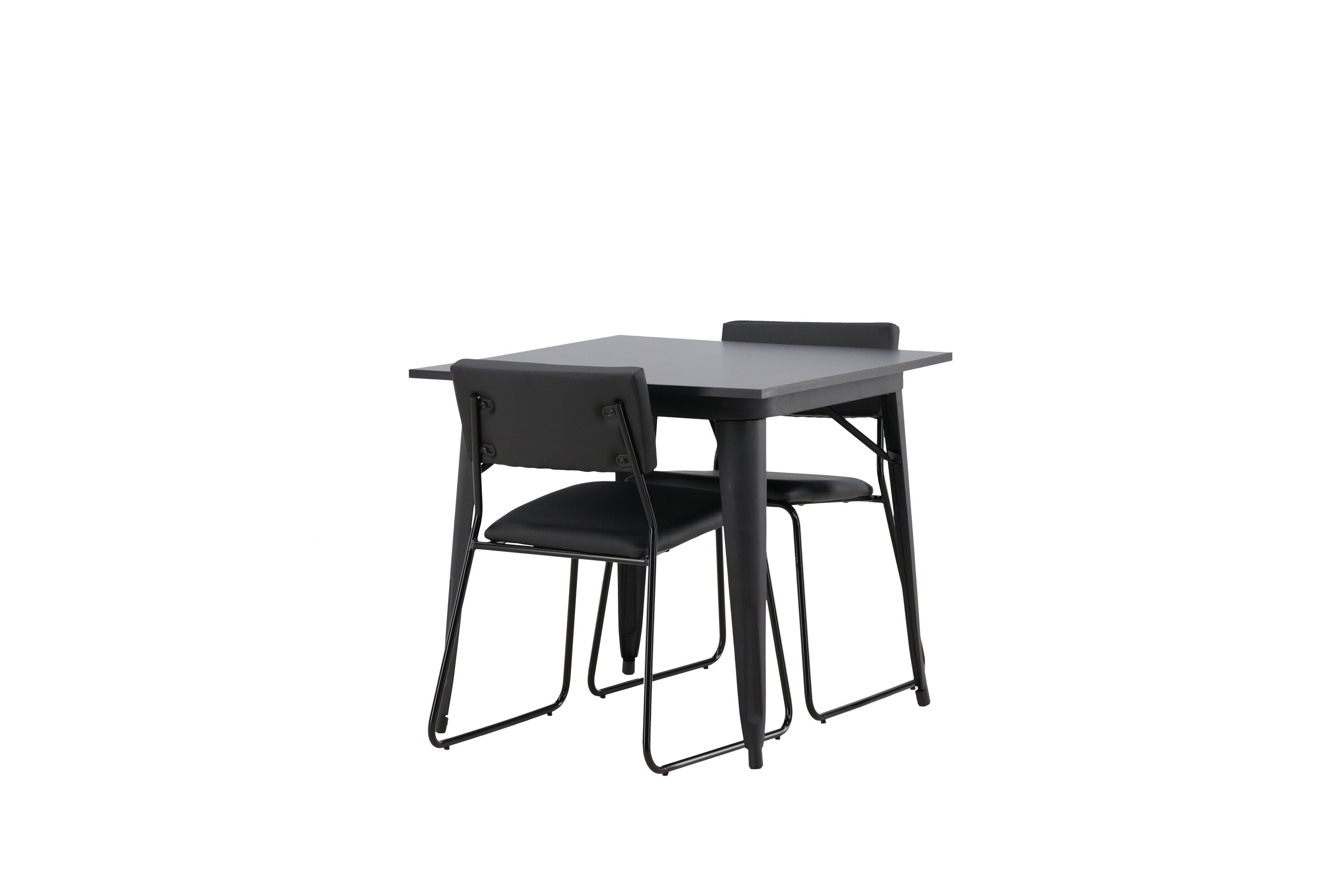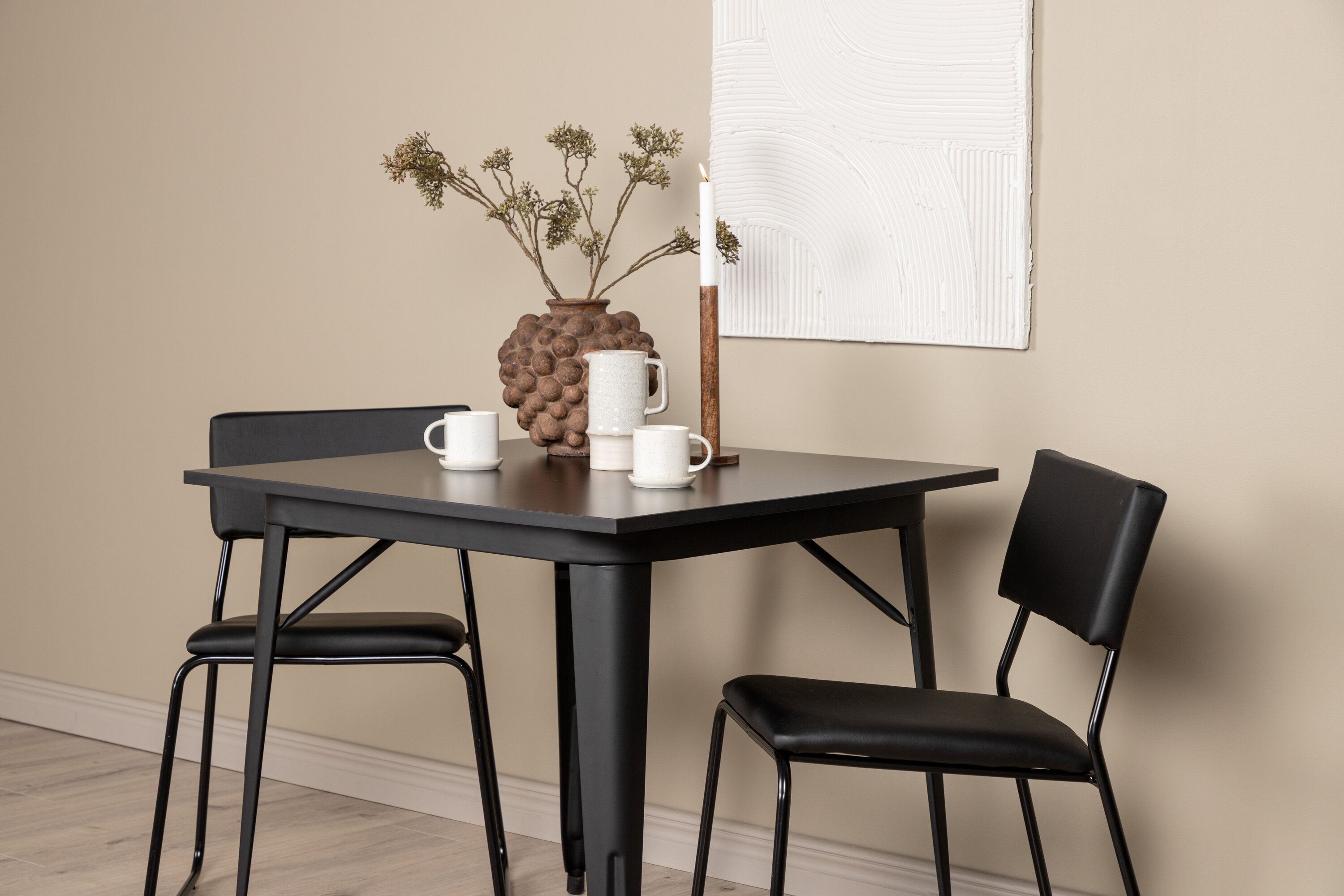 Eine gepflegte Essgruppe, die perfekt in die kleinere Küche passt! Dieser Esstisch aus der Tempe-Serie hat ein klassisches, quadratisches Design und eine zeitlose schwarze Farbe. Die Tischplatte ist aus schwarzem MDF und die Beine aus schwarzem Metall. Hier in geschmackvoller Kombination mit zwei Esszimmerstühlen aus der Kenth-Serie. Der Stuhl hat ein minimalistisches, modernes Design, das ein luftiges Gefühl im Raum erzeugt. Rückenlehne und Sitz sind aus schwarzem PU-Leder und Polyester und die schmalen Stuhlbeine aus Eisen. Kreieren Sie einen charmanten und modernen Hingucker in Ihrem Wohnzimmer!