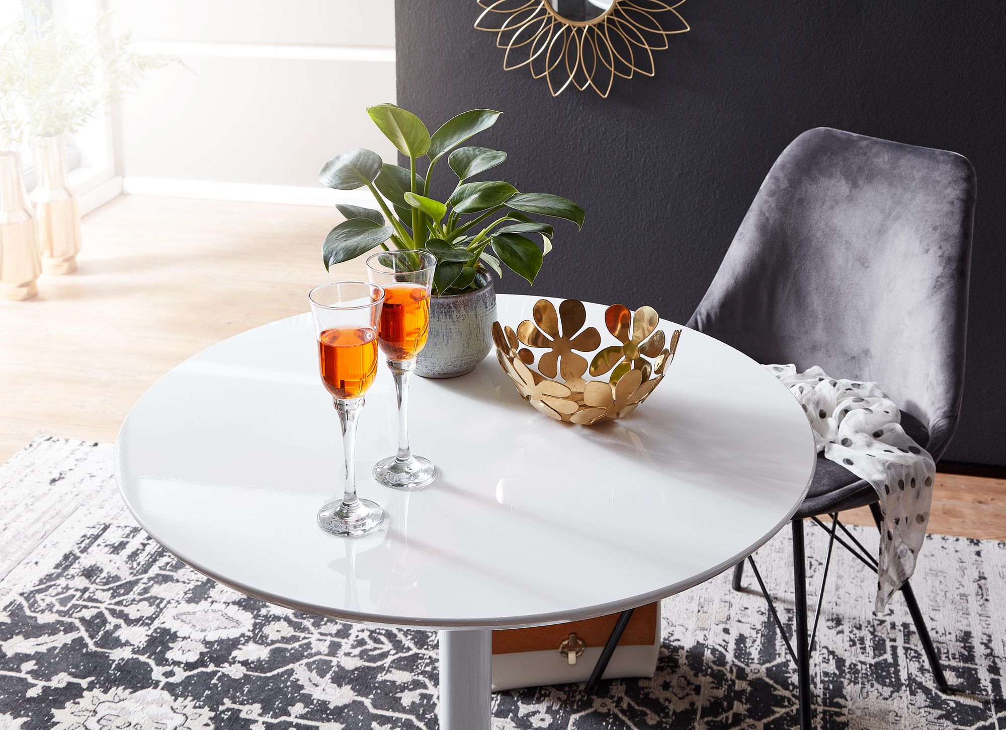 - Farbe Tischplatte: Weiß hochglänzend
