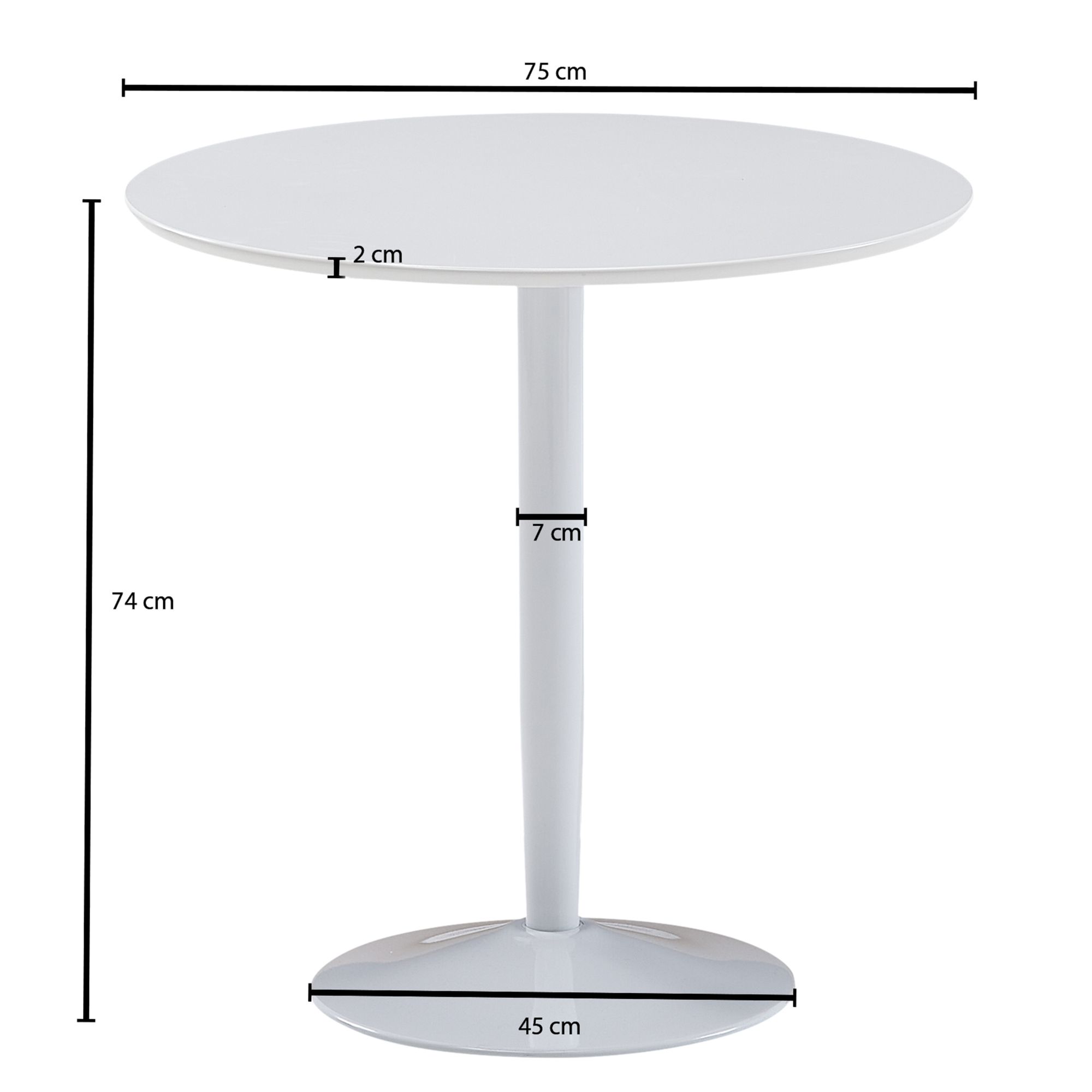 Produktinformationen "Runder Esstisch MDF Weiß Hochglanz | Weißes Metallgestell | Maße 75x75x74 cm"