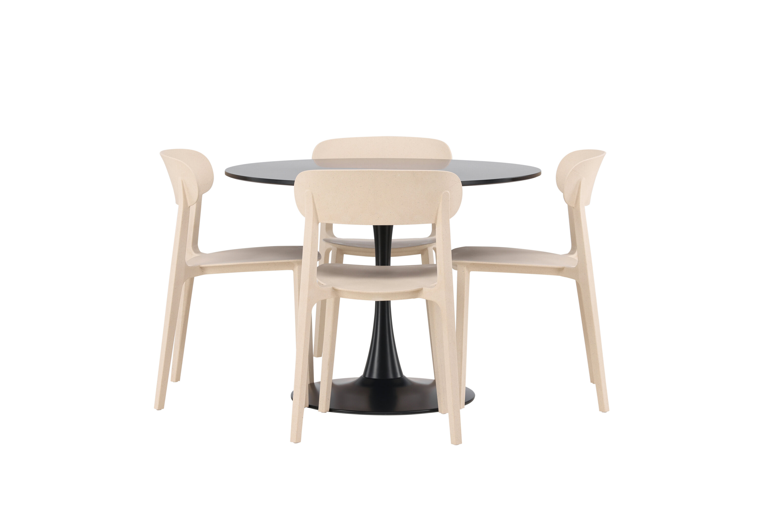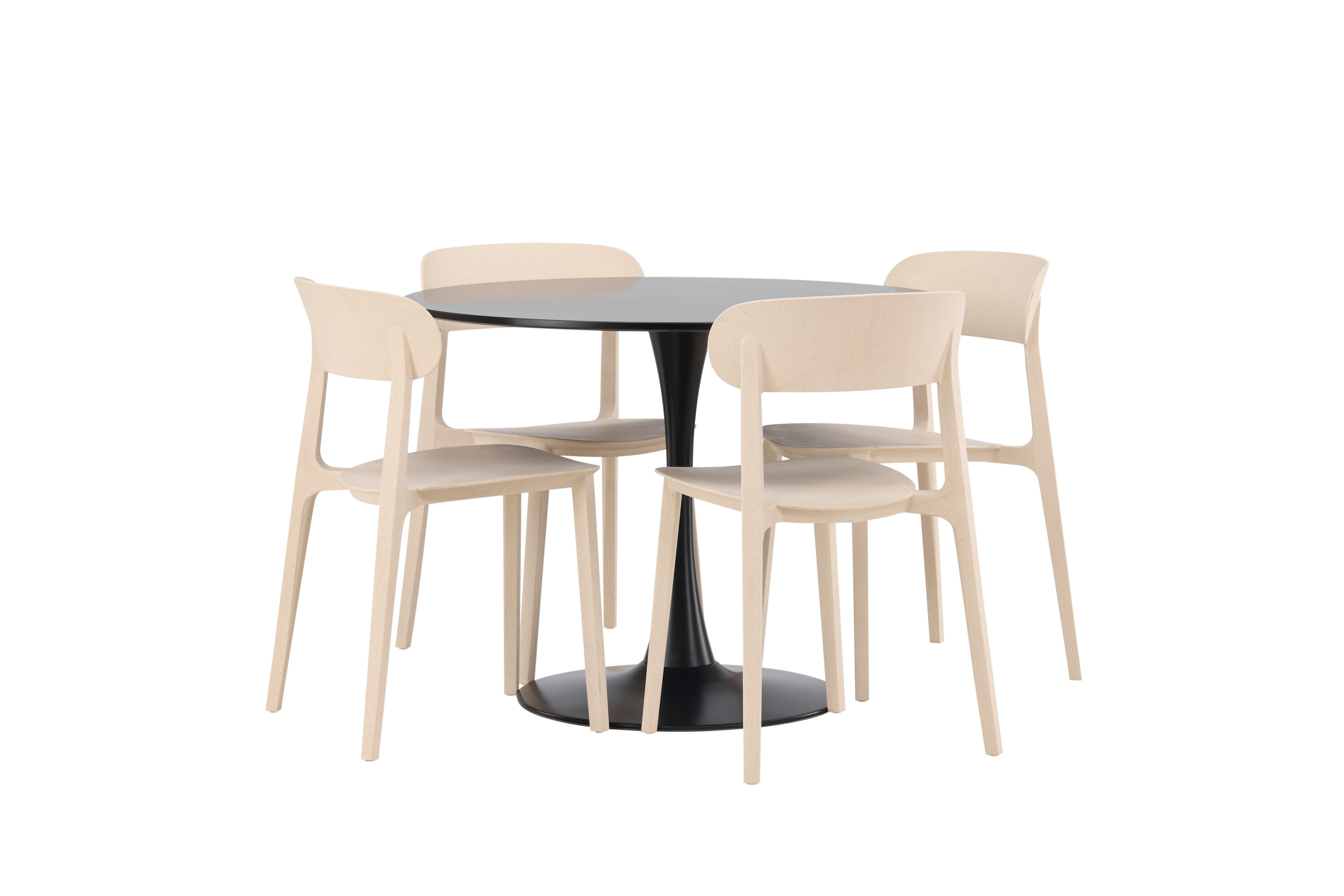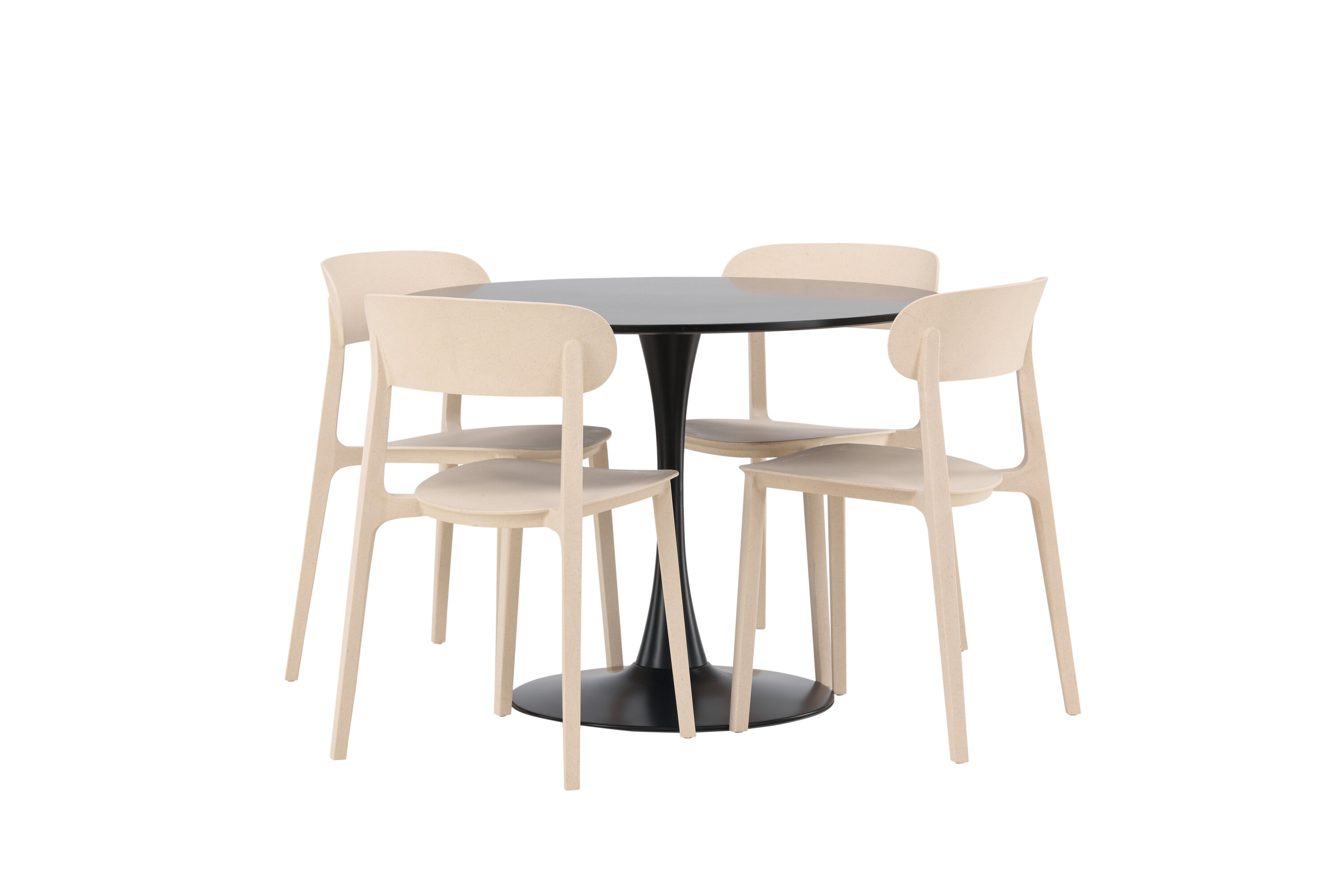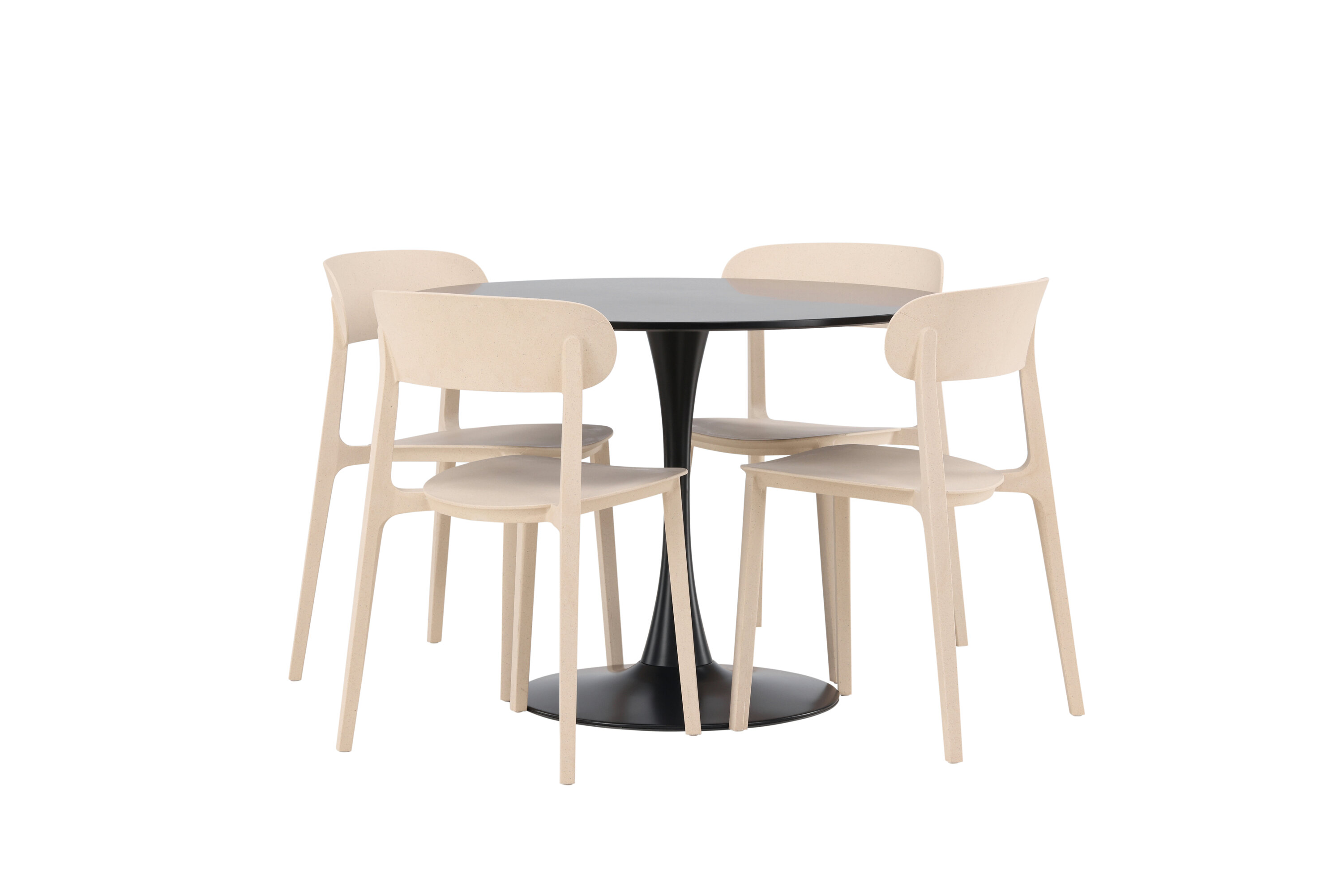 Schlichte Farben und stilvolles Design! Der Esstisch Glade hat ein stilvolles skandinavisches Design mit einem schlanken Trompetenfuß aus schwarzem Stahl und einer schwarzen Tischplatte aus MDF. Hier in schlanker Kombination mit Holzstühlen aus der Serie Åstol. Der Stuhl ist konsequent in einer geschmackvollen hellpolierten Farbe aus Holzverbundwerkstoff mit einem luftigen Design und nordischen geraden Formen gefertigt. Richten Sie das Herz Ihres Zuhauses einladend mit einer runden Essgruppe ein! Tischmaße: 100cm.