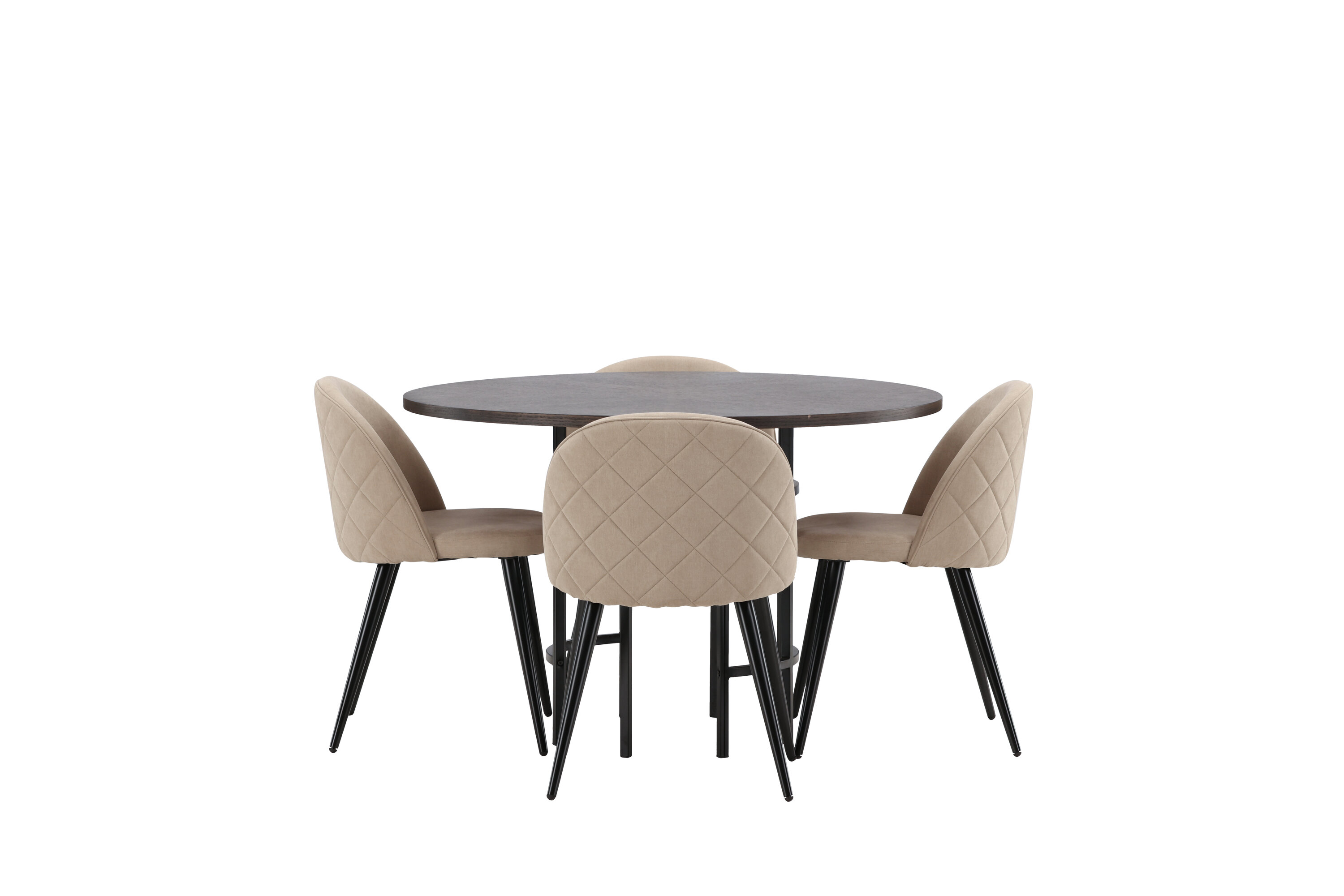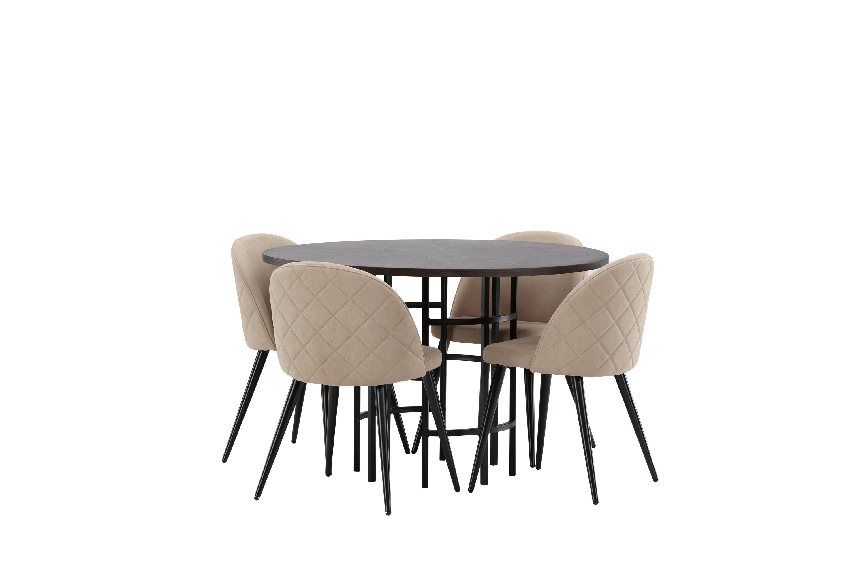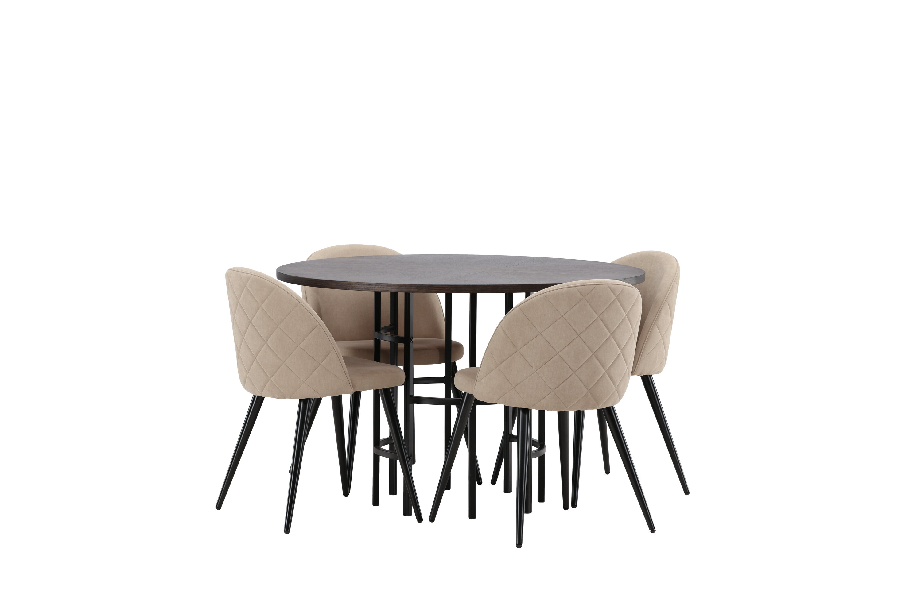 Eine komfortable Speisegruppe, die den Test der Zeit besteht! Dieser trendfeste Esstisch aus der Copenhagen Serie gehört zur Furniture Fashion Kollektion und hat eine schöne braune Tischplatte aus MDF mit Furnier und einen dekorativen, zylinderförmigen Sockel aus schwarzem Metall. Hier zusammen mit einem modernen Stuhl aus der Serie Velvet Stitches in warmem Beige. Dieser Esszimmerstuhl hat ein komplett gepolstertes Design mit einer leicht abgerundeten Rückenlehne und Sitzfläche aus weichem Polyestergewebe und Beinen aus schwarzem pulverbeschichtetem Metall. Erstelle ein charmantes Herzstück, um die Familie zu versammeln!