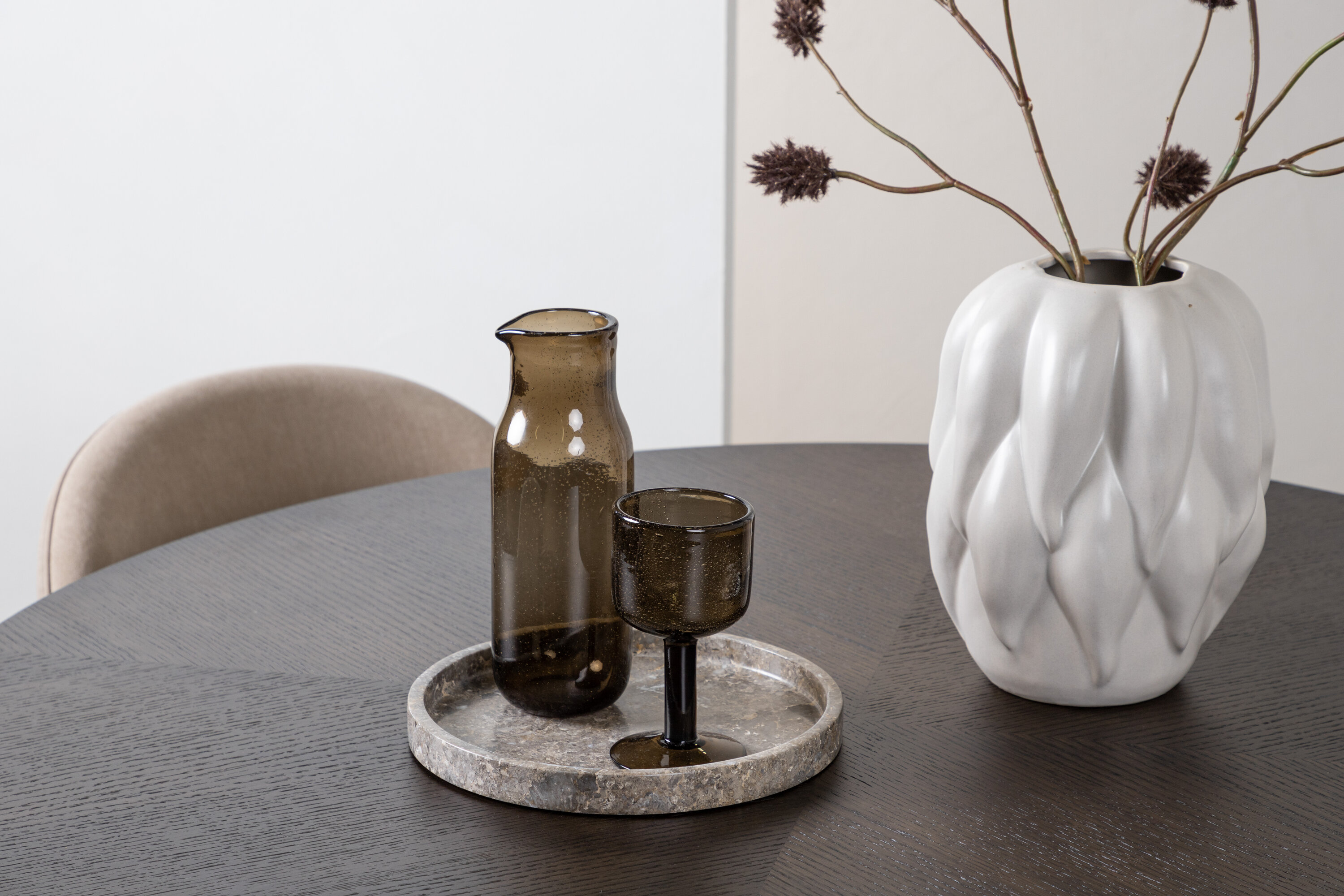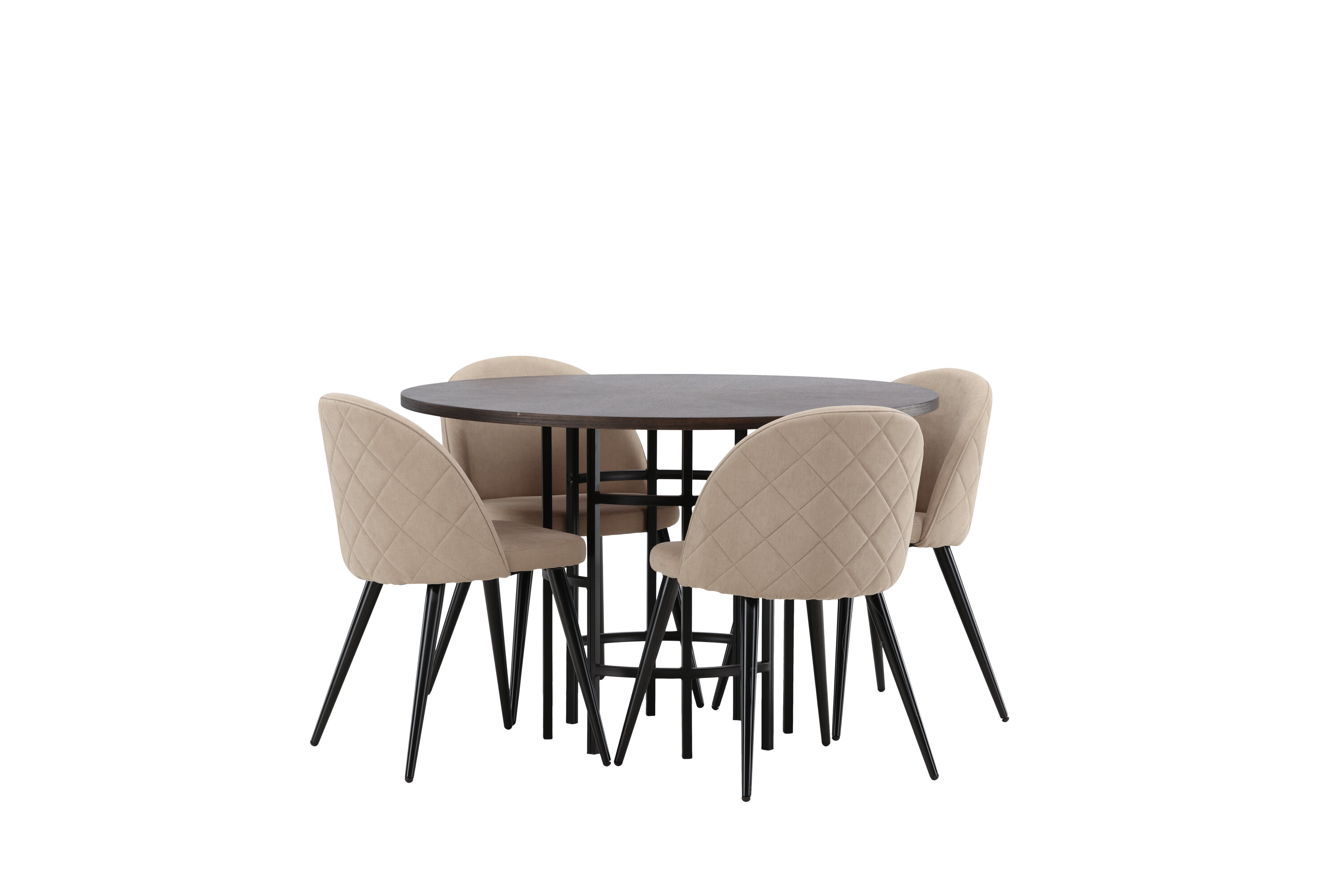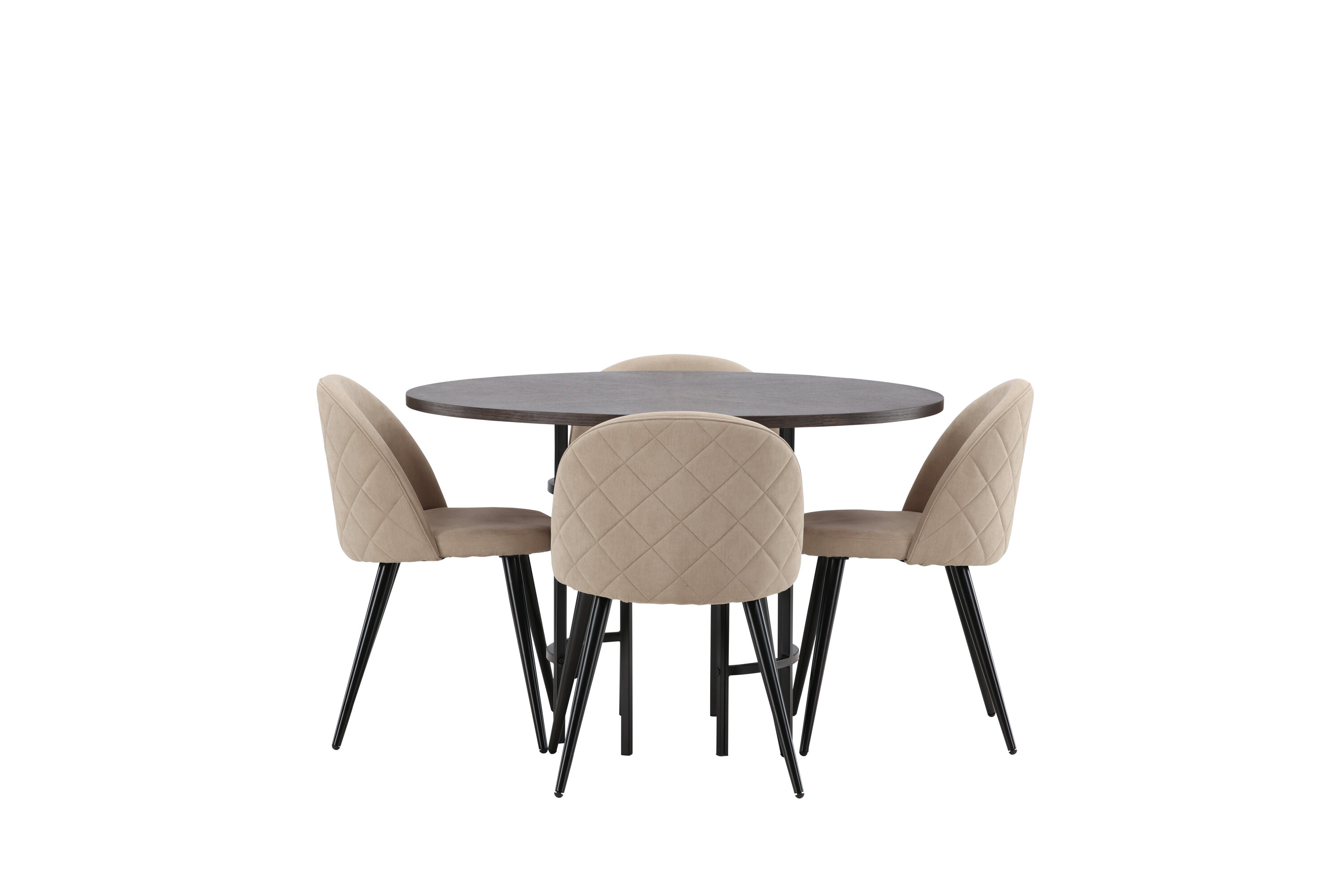 Eine komfortable Speisegruppe, die den Test der Zeit besteht! Dieser trendfeste Esstisch aus der Copenhagen Serie gehört zur Furniture Fashion Kollektion und hat eine schöne braune Tischplatte aus MDF mit Furnier und einen dekorativen, zylinderförmigen Sockel aus schwarzem Metall. Hier zusammen mit einem modernen Stuhl aus der Serie Velvet Stitches in warmem Beige. Dieser Esszimmerstuhl hat ein komplett gepolstertes Design mit einer leicht abgerundeten Rückenlehne und Sitzfläche aus weichem Polyestergewebe und Beinen aus schwarzem pulverbeschichtetem Metall. Erstelle ein charmantes Herzstück, um die Familie zu versammeln!