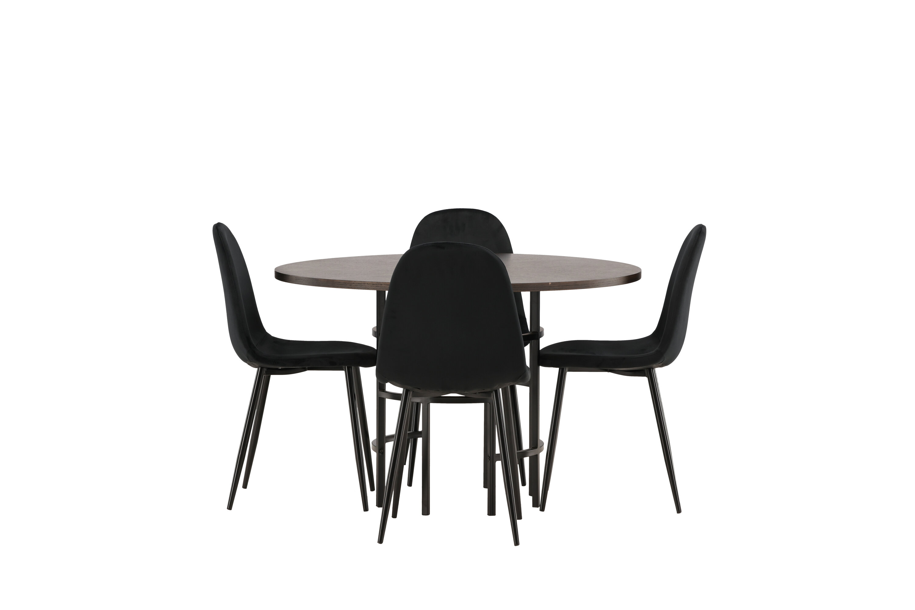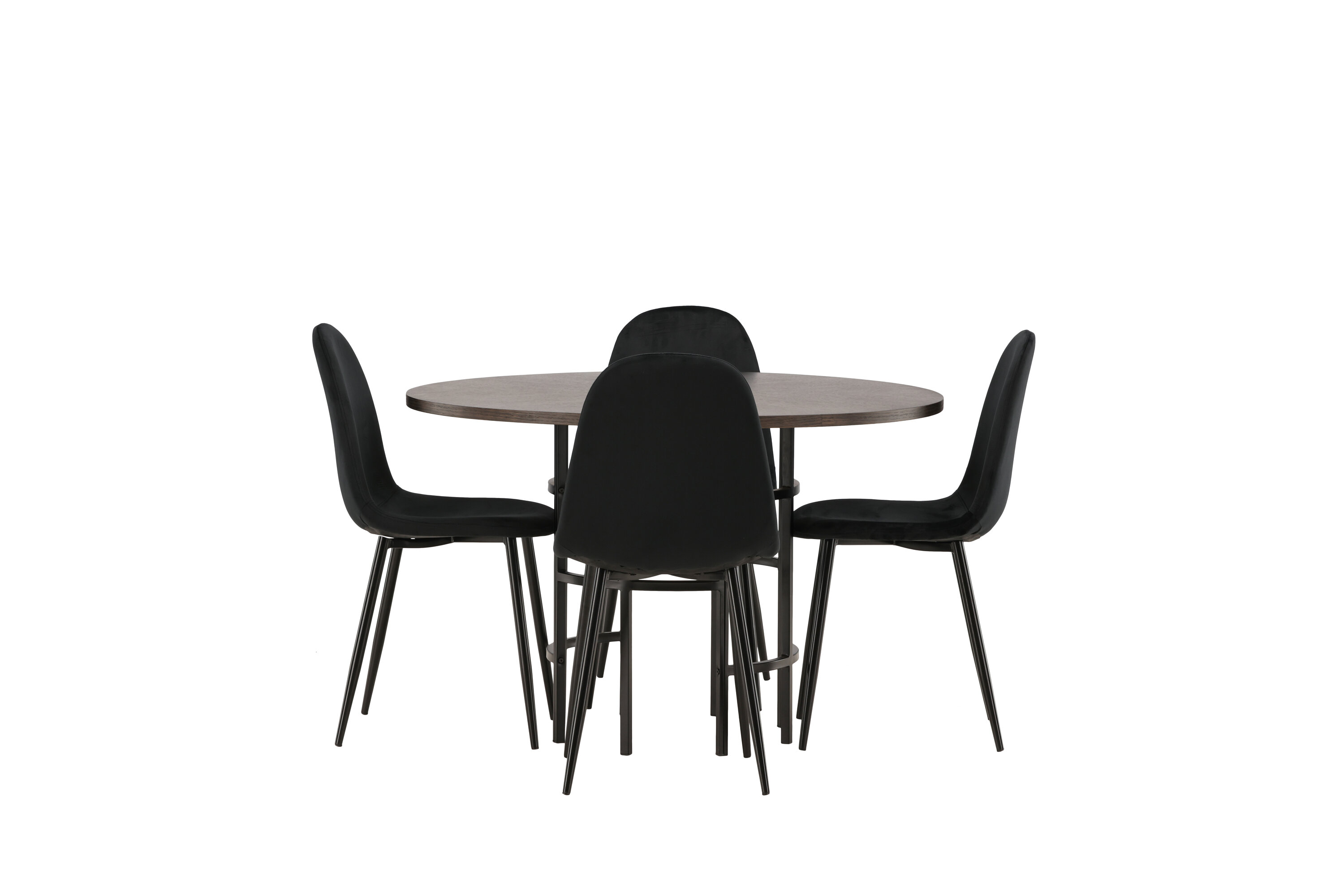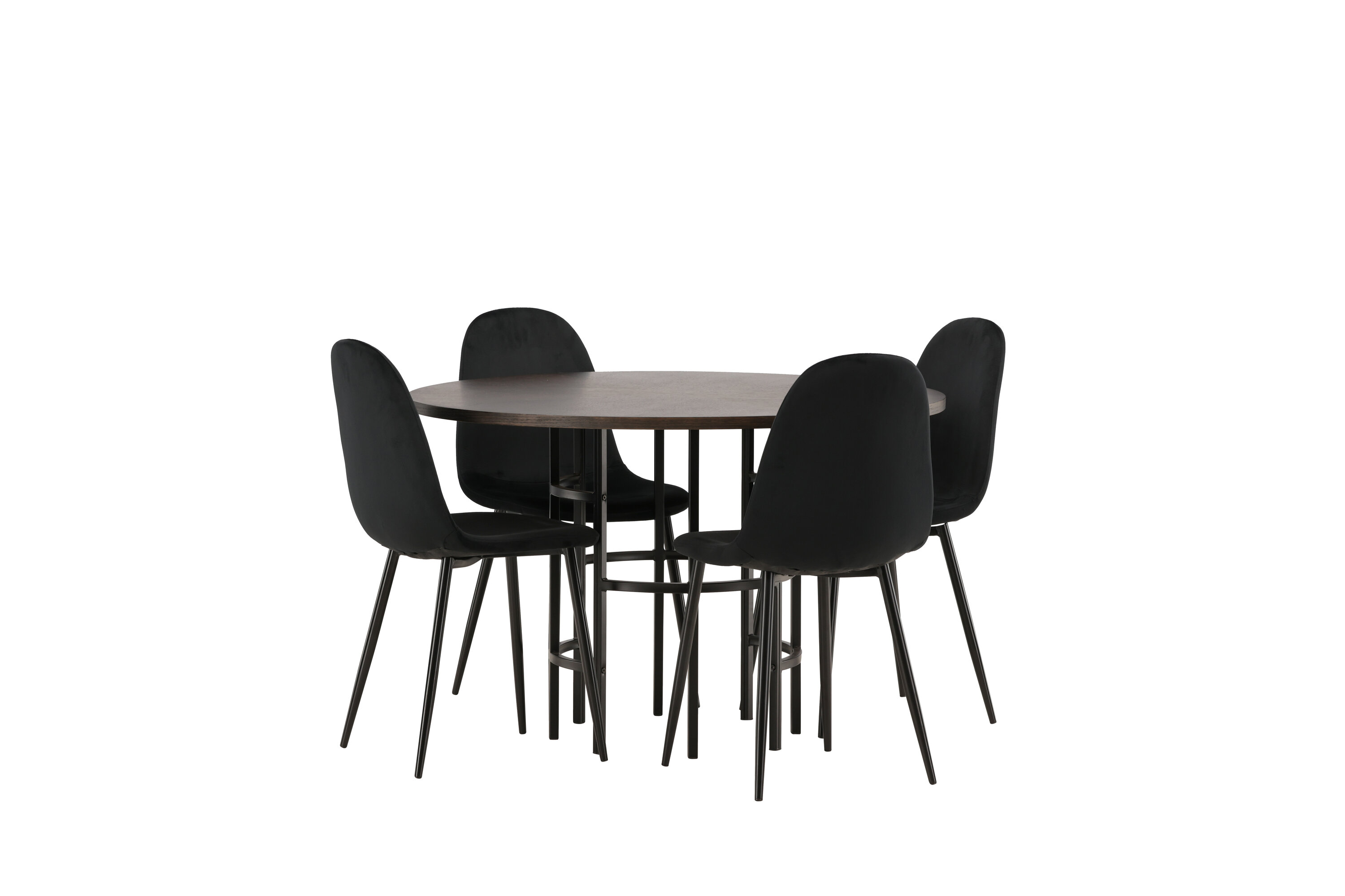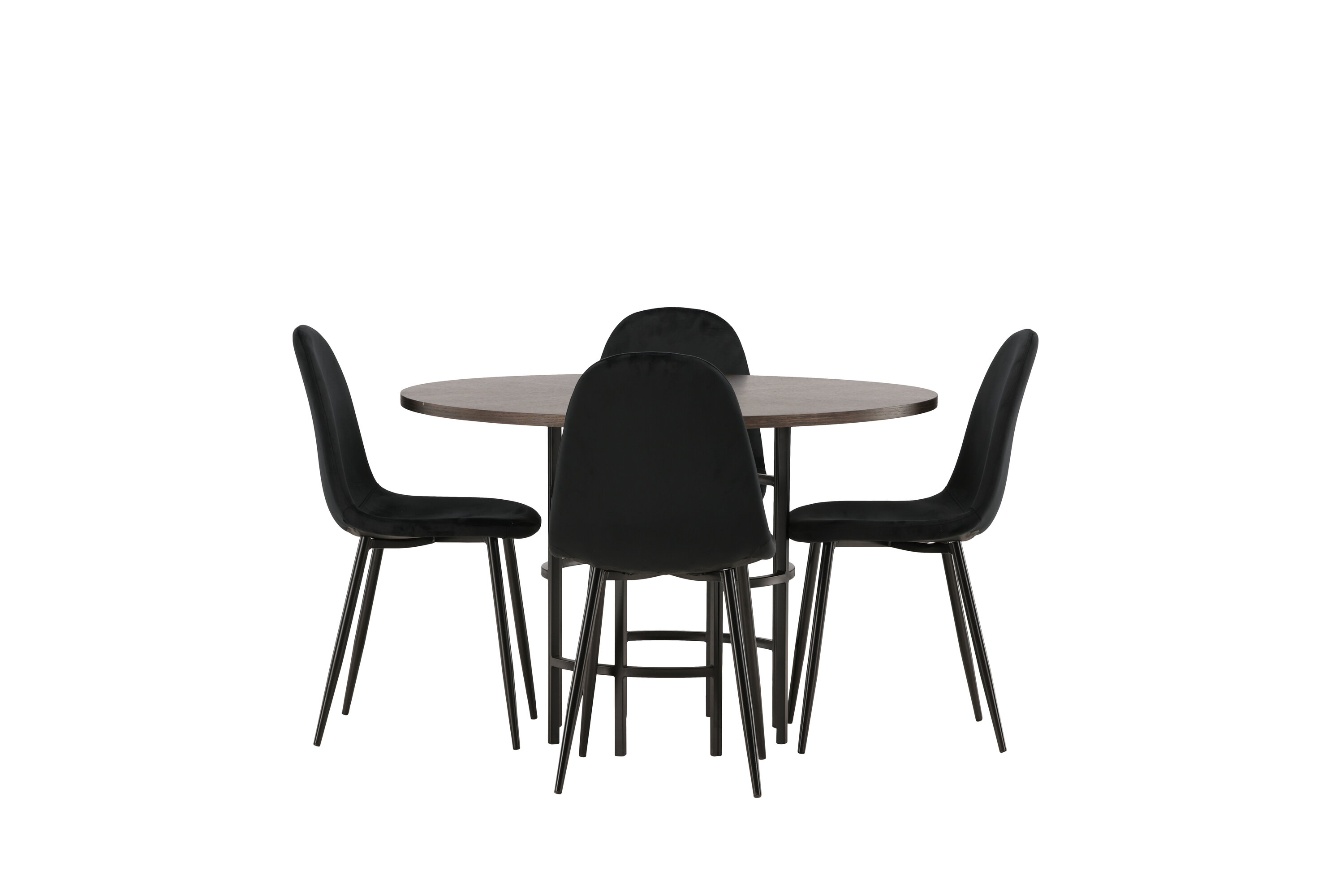 Stilvoll, modern und zeitlos - eine Essgruppe, die beeindruckt! Dieser trendfeste Esstisch aus der Copenhagen Serie gehört zur Furniture Fashion Kollektion und hat eine schöne braune Tischplatte aus MDF mit Furnier und einen dekorativen, zylinderförmigen Sockel aus schwarzem Metall. Hier zusammen mit unseren bequemen Esszimmerstühlen aus der Polar-Serie. Der Stuhl hat ein vollständig gepolstertes Design mit einer abgerundeten Rückenlehne und einem Sitz aus schwarzem Samtstoff mit weicher Polsterung und Beinen aus schwarzem pulverbeschichtetem Metall. Vermeiden Sie Kompromisse zwischen Komfort und Design!