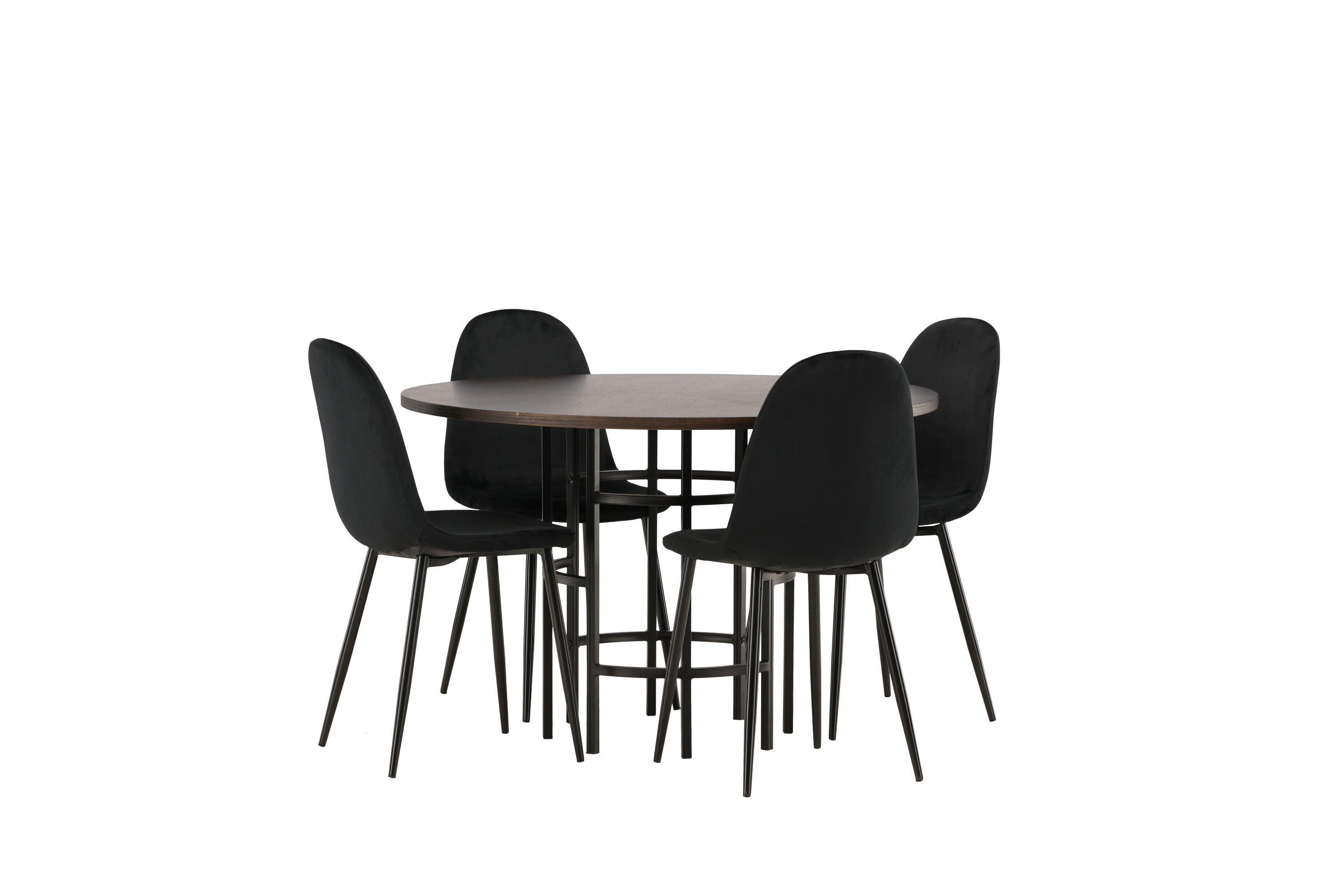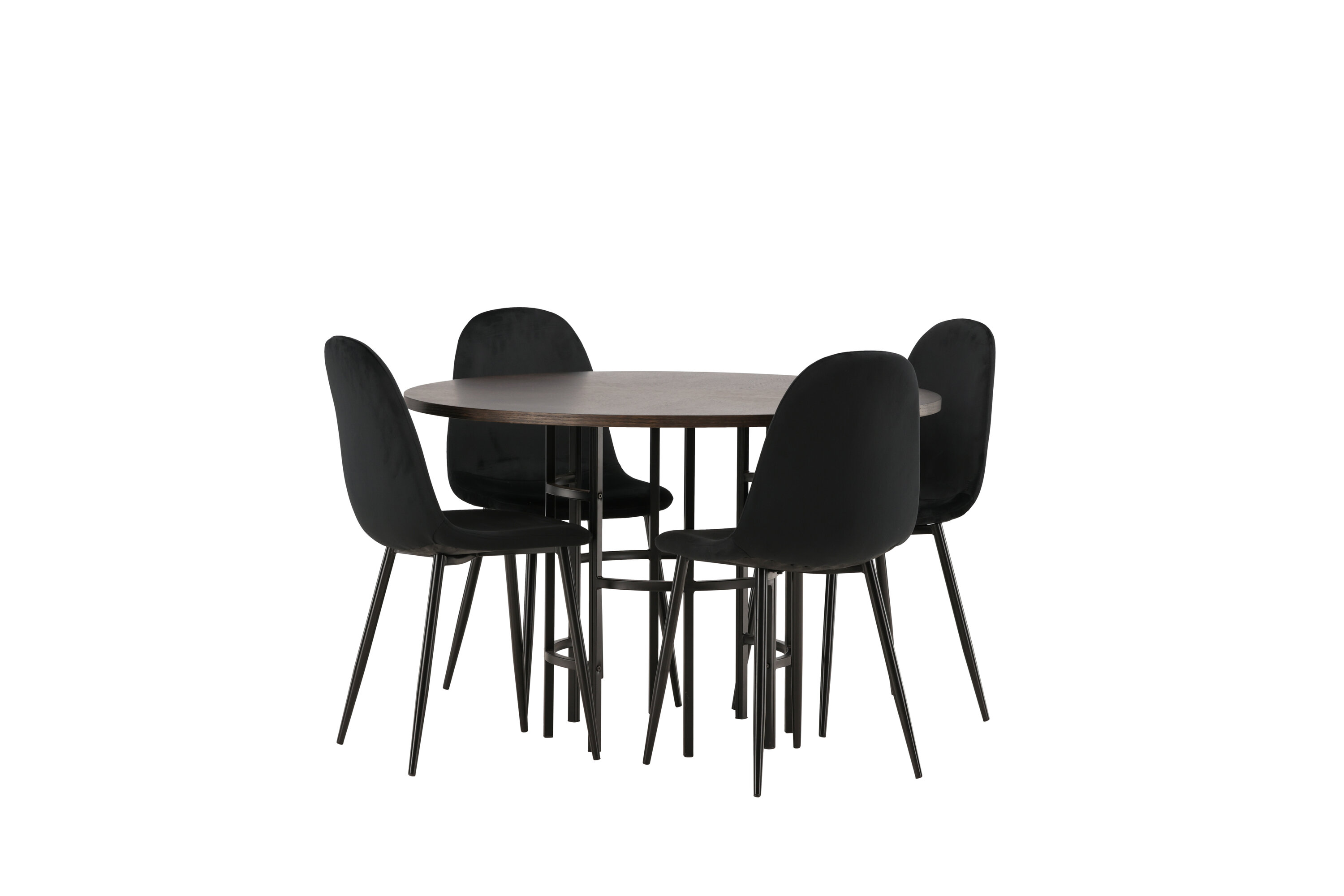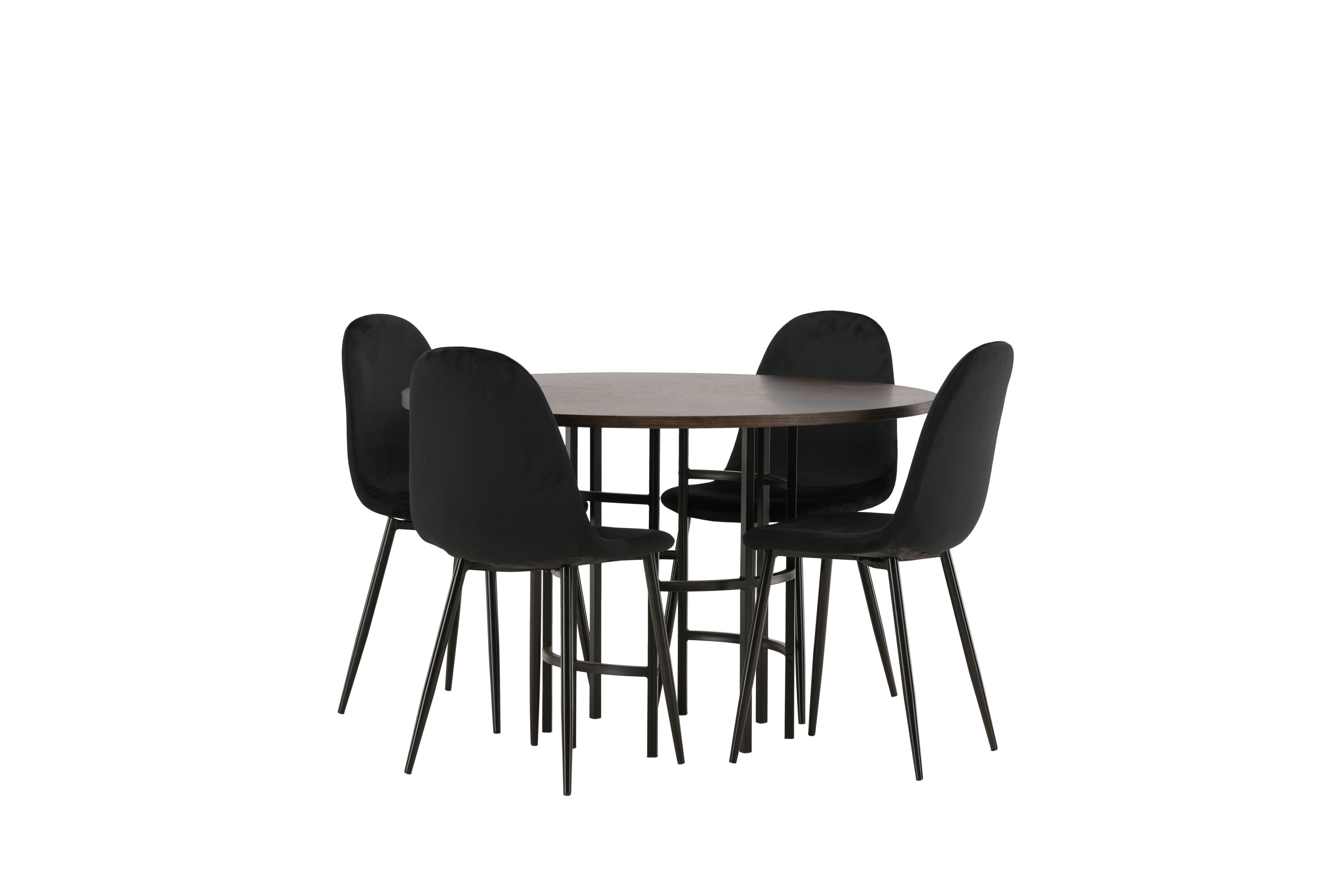 Stilvoll, modern und zeitlos - eine Essgruppe, die beeindruckt! Dieser trendfeste Esstisch aus der Copenhagen Serie gehört zur Furniture Fashion Kollektion und hat eine schöne braune Tischplatte aus MDF mit Furnier und einen dekorativen, zylinderförmigen Sockel aus schwarzem Metall. Hier zusammen mit unseren bequemen Esszimmerstühlen aus der Polar-Serie. Der Stuhl hat ein vollständig gepolstertes Design mit einer abgerundeten Rückenlehne und einem Sitz aus schwarzem Samtstoff mit weicher Polsterung und Beinen aus schwarzem pulverbeschichtetem Metall. Vermeiden Sie Kompromisse zwischen Komfort und Design!