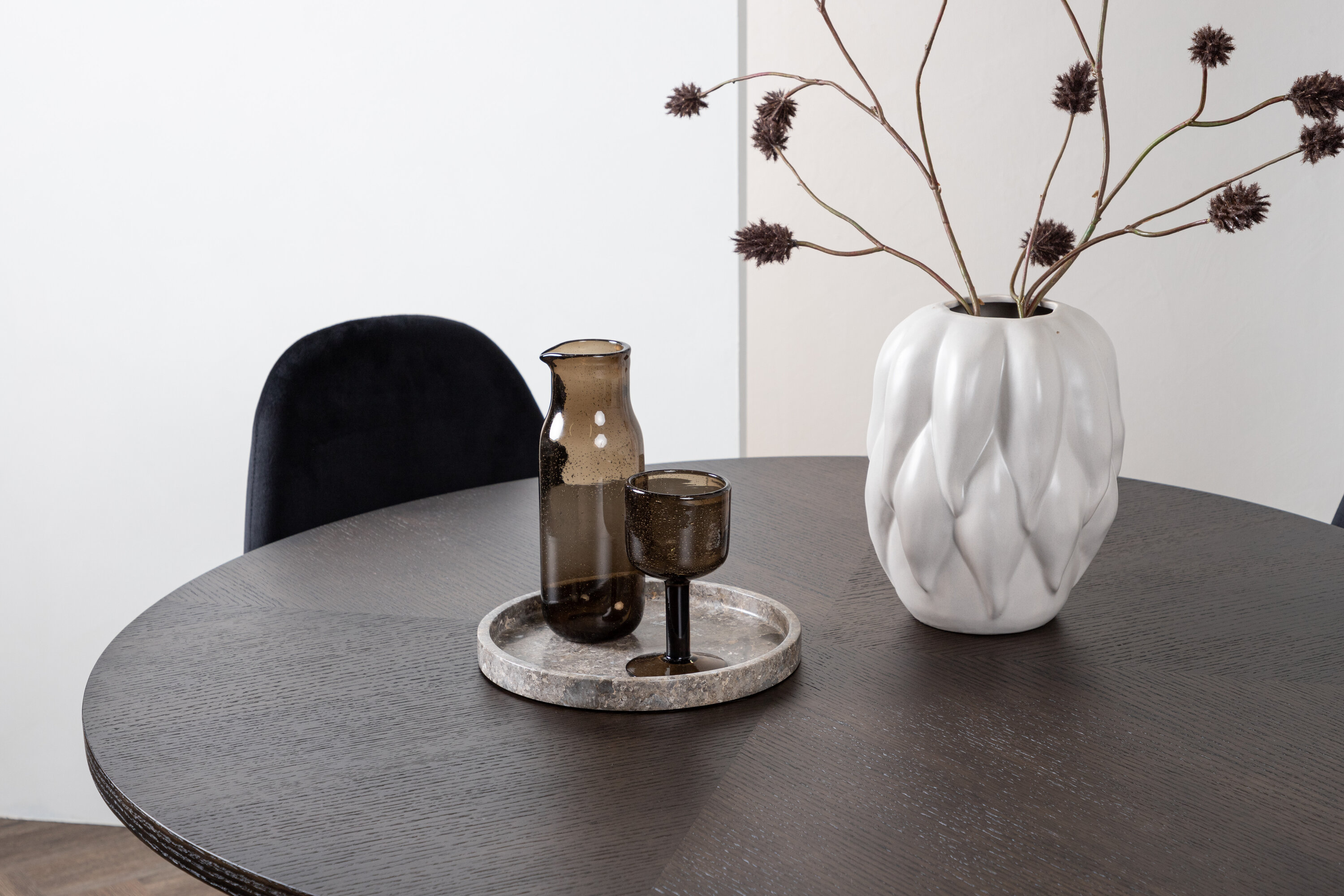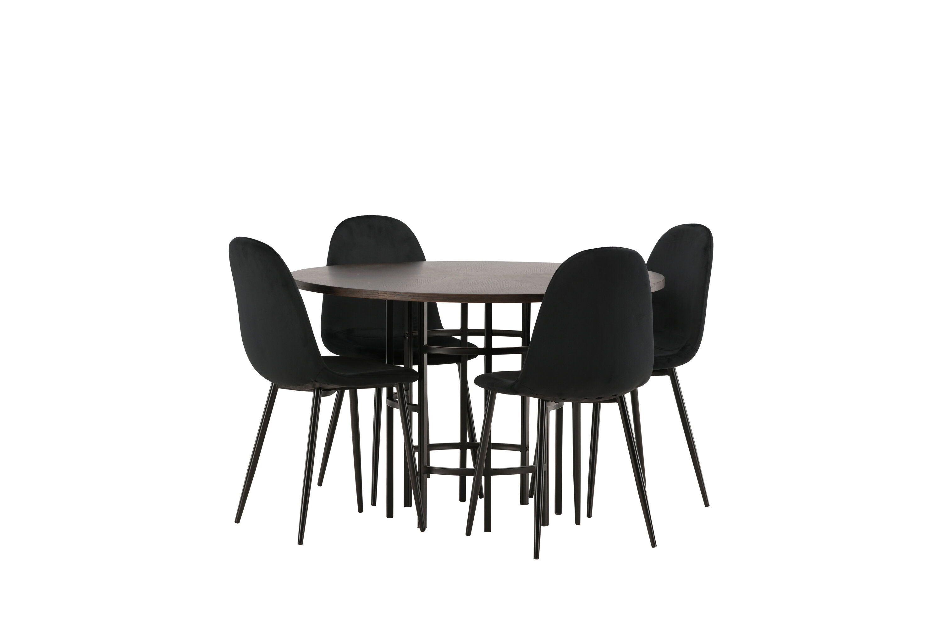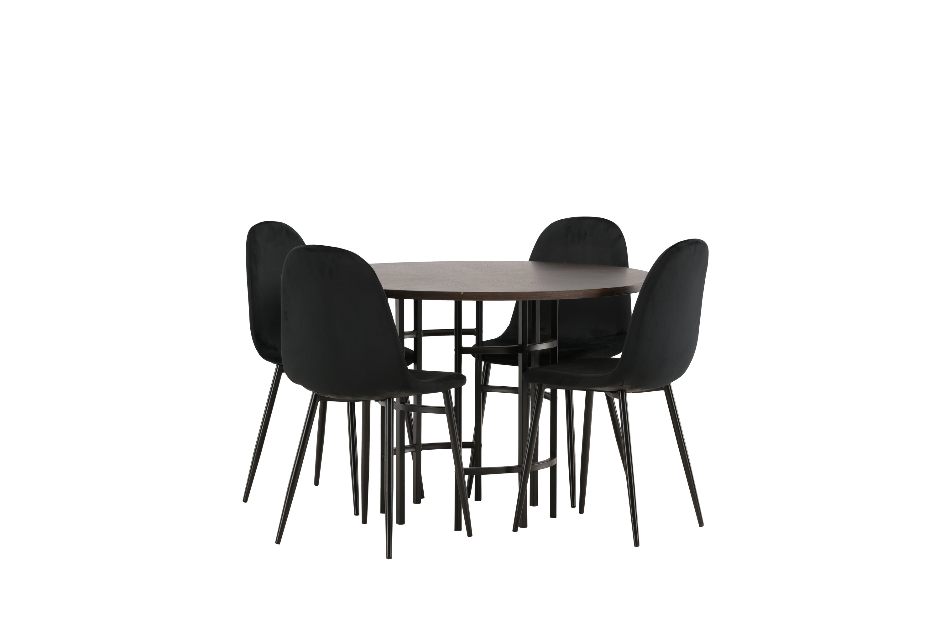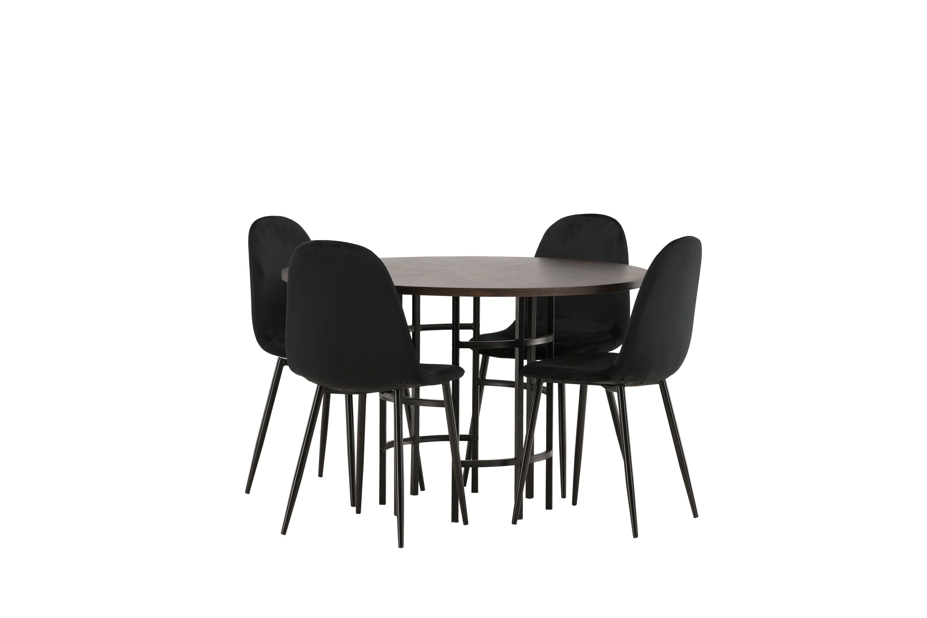 Stilvoll, modern und zeitlos - eine Essgruppe, die beeindruckt! Dieser trendfeste Esstisch aus der Copenhagen Serie gehört zur Furniture Fashion Kollektion und hat eine schöne braune Tischplatte aus MDF mit Furnier und einen dekorativen, zylinderförmigen Sockel aus schwarzem Metall. Hier zusammen mit unseren bequemen Esszimmerstühlen aus der Polar-Serie. Der Stuhl hat ein vollständig gepolstertes Design mit einer abgerundeten Rückenlehne und einem Sitz aus schwarzem Samtstoff mit weicher Polsterung und Beinen aus schwarzem pulverbeschichtetem Metall. Vermeiden Sie Kompromisse zwischen Komfort und Design!