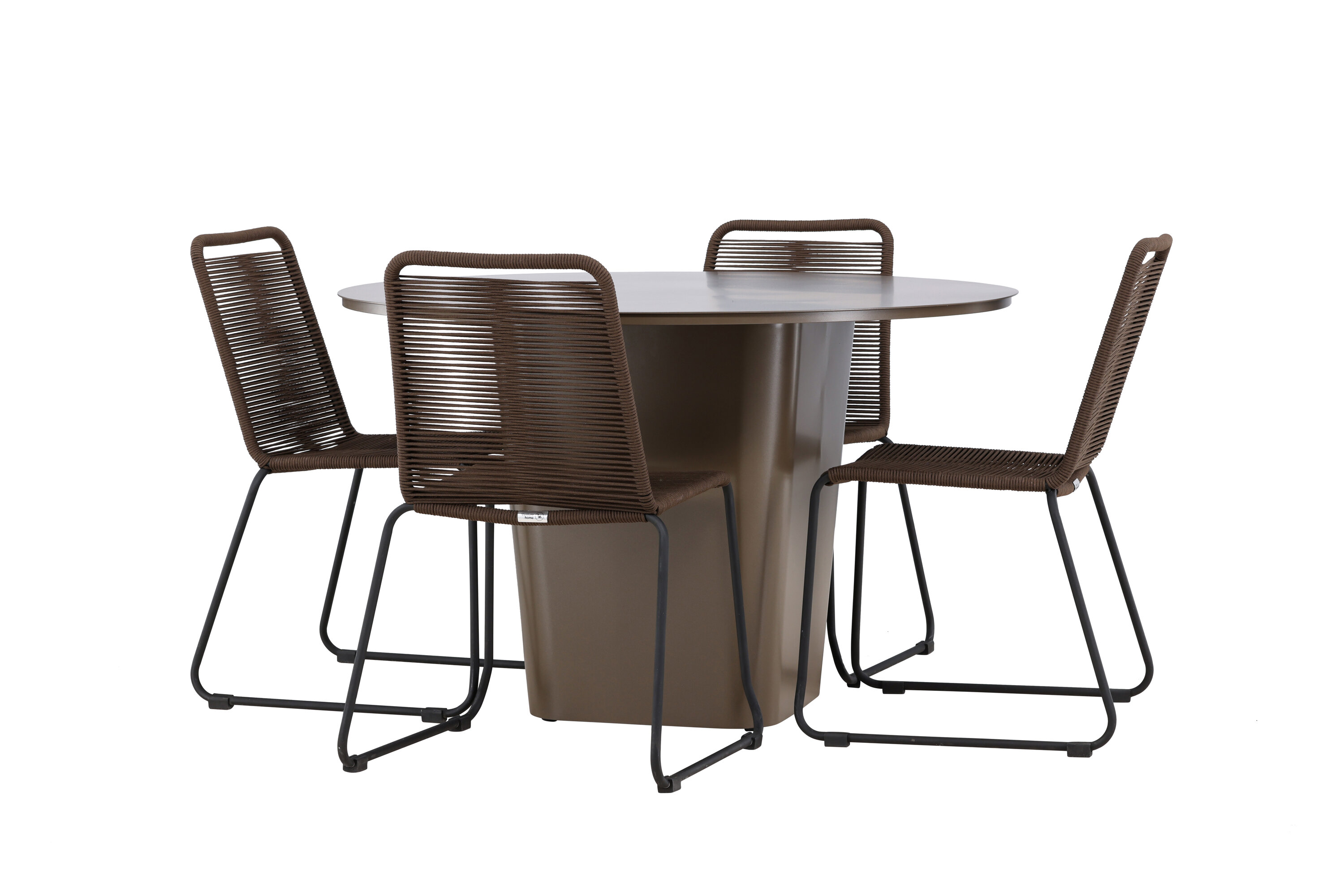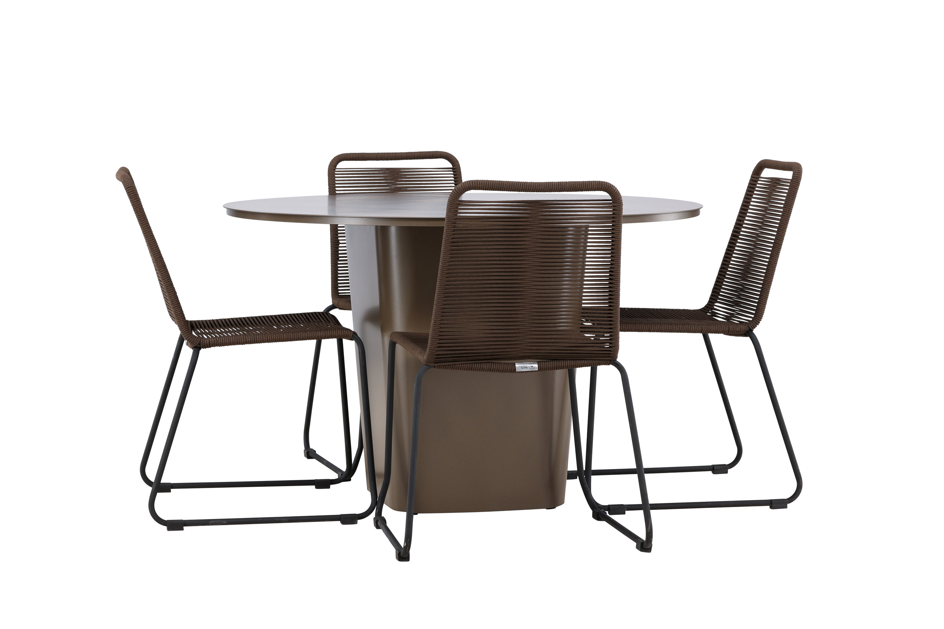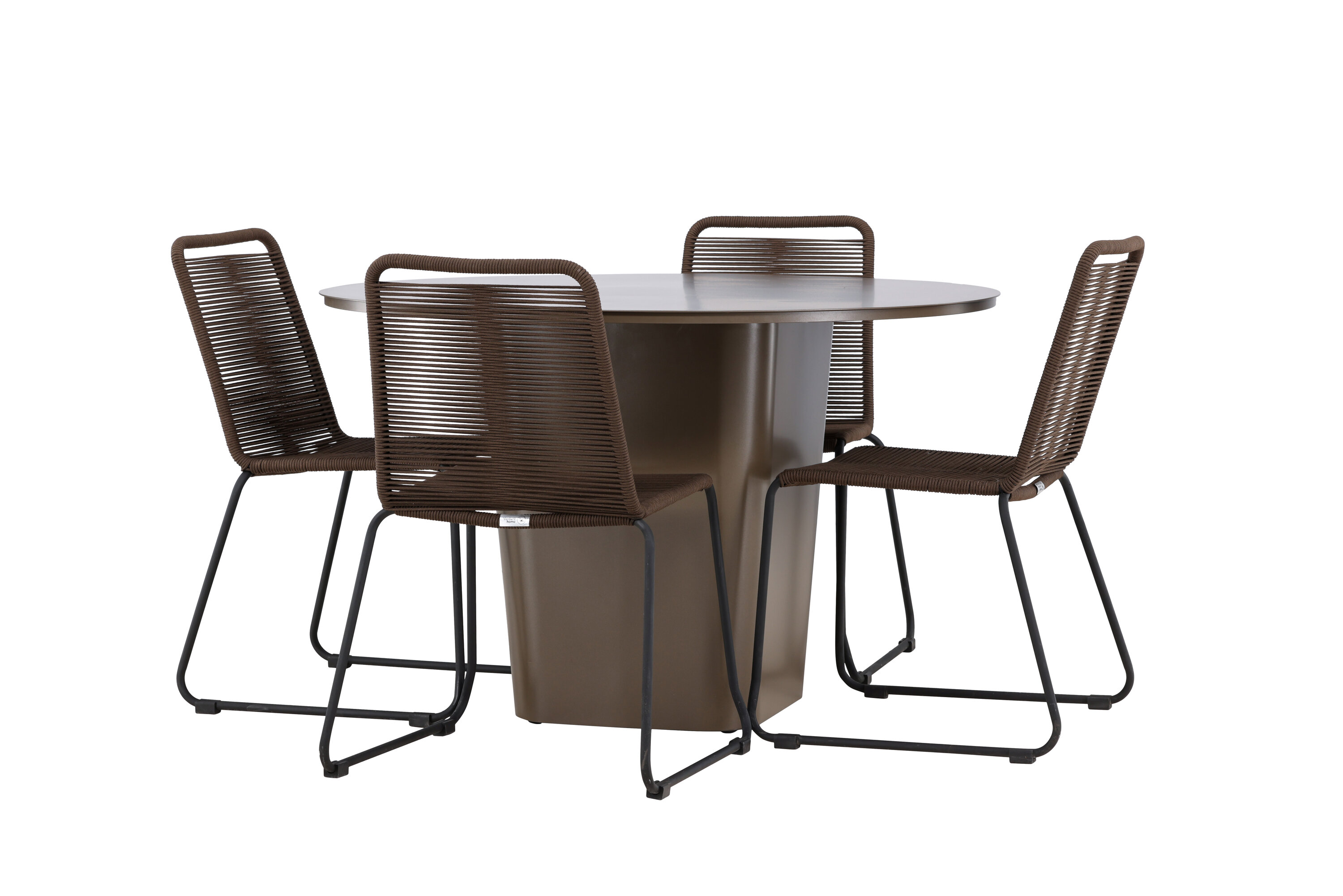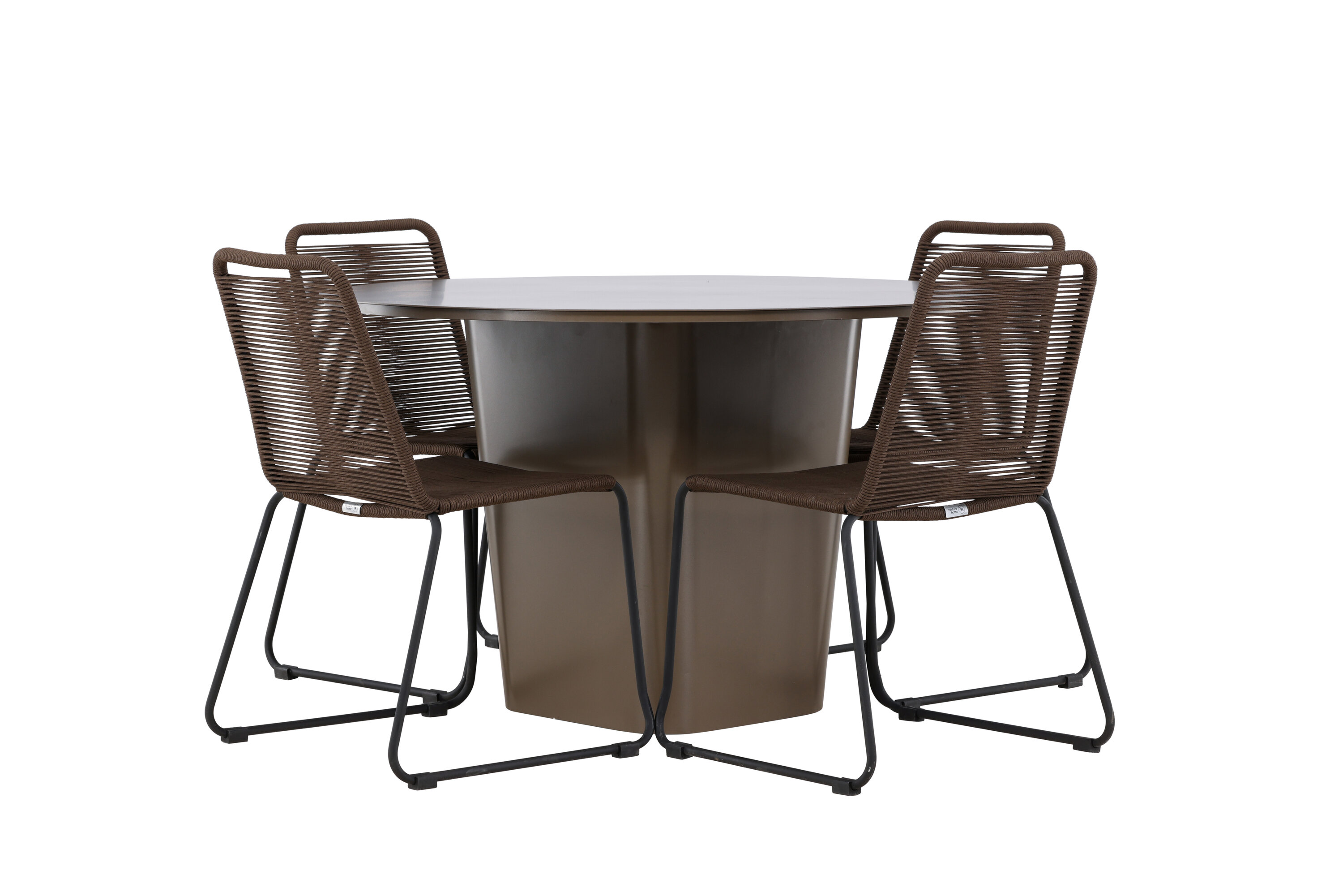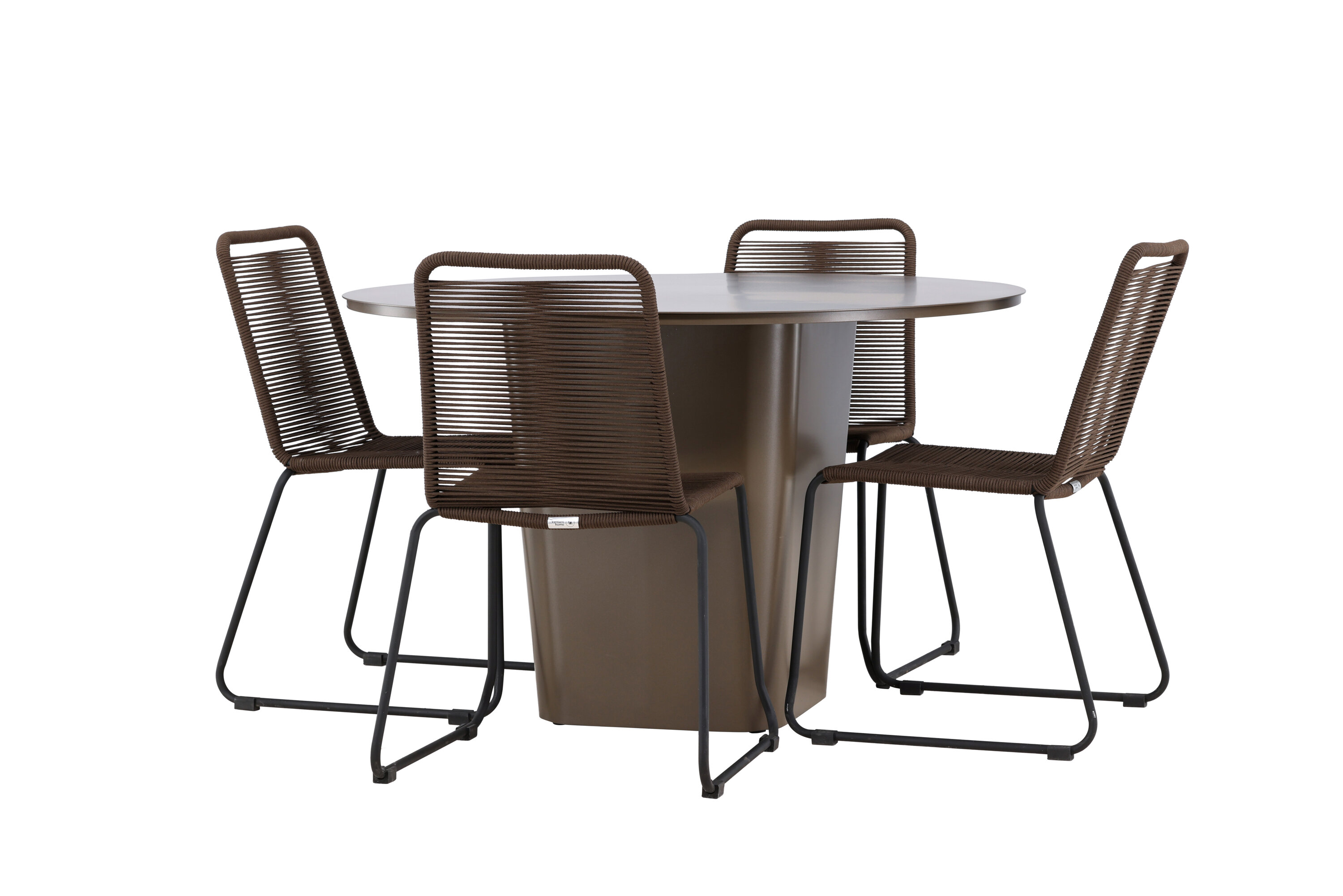 Der Tisch Santa Fe dient mit seinem beeindruckenden Design und den praktischen Funktionen als Herzstück dieses Ess-Sets. Hergestellt aus braunem Aluminiummaterial, kombiniert es Langlebigkeit mit Leichtbau und einfacher Wartung. Mit einem Durchmesser von 120 cm bietet er reichlich Platz für Familienessen oder entspanntes Beisammensein mit Freunden im Freien.