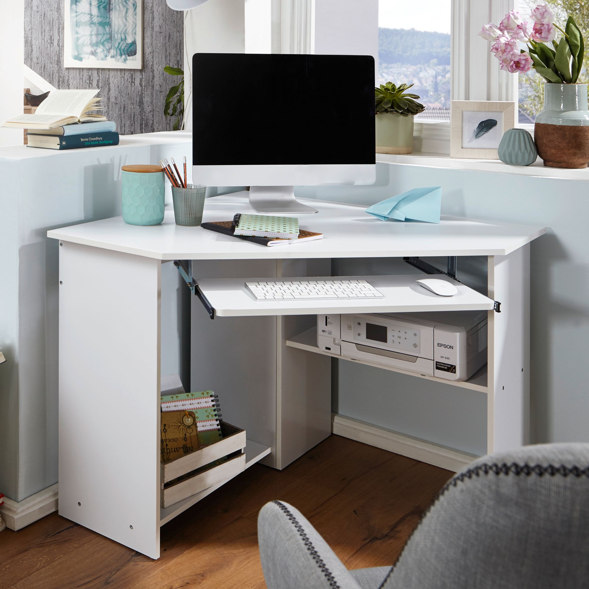 Eckschreibtisch ROM weiß | 127x73x88,5 cm | Spanplatte mit Tastaturauszug