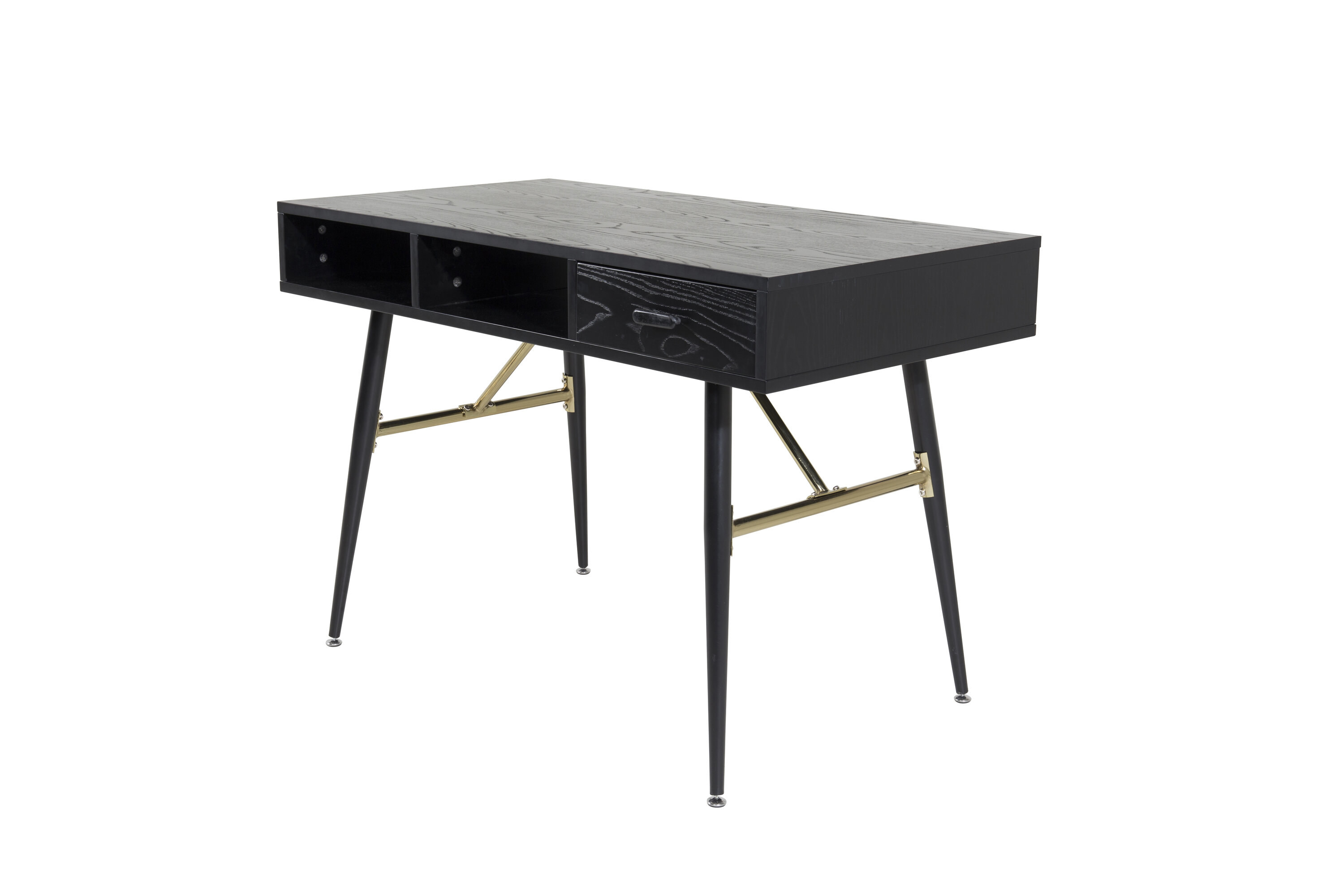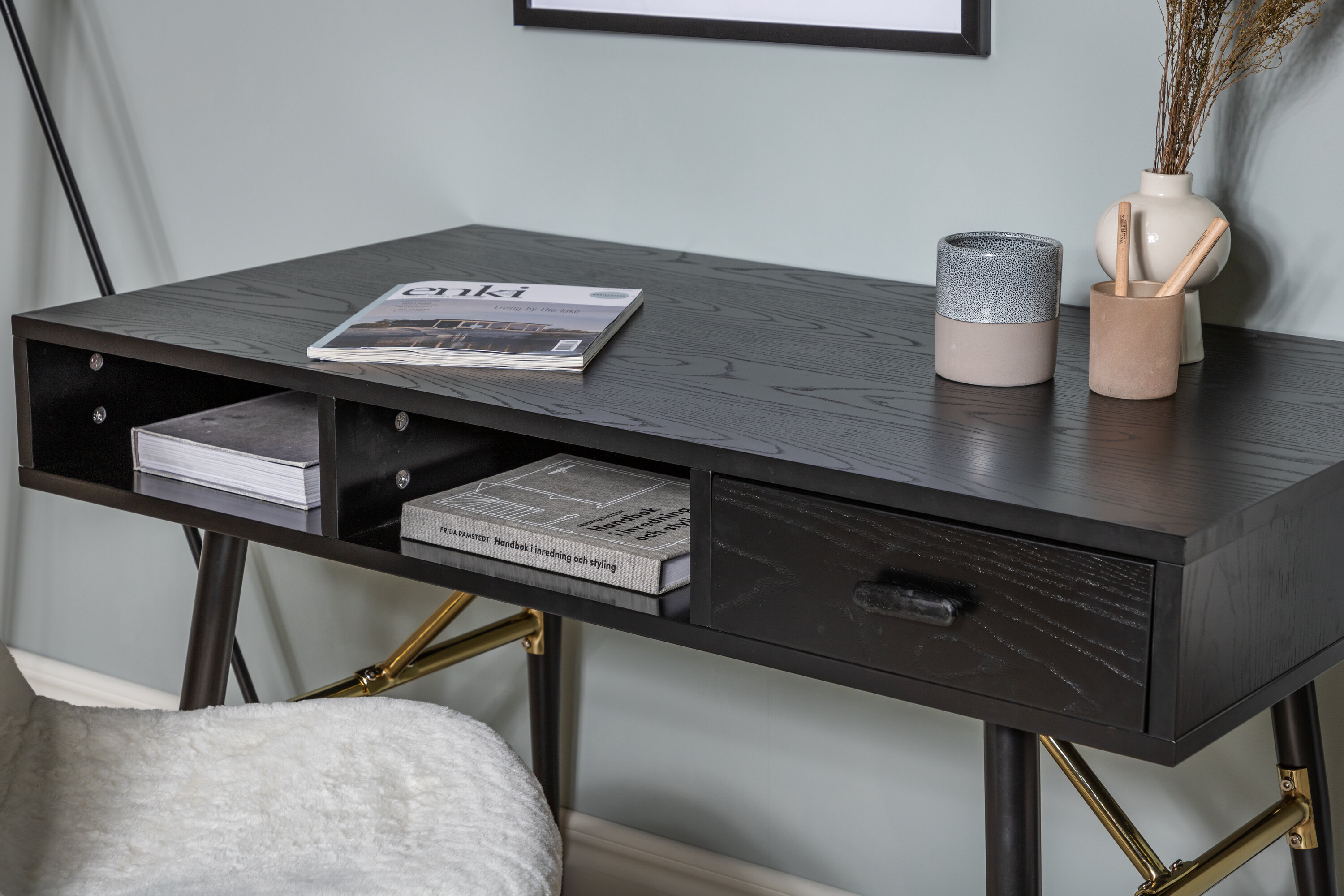 Gold-Schreibtisch - Schwarzes Furnier - Schwarze Beine - Messingdetails