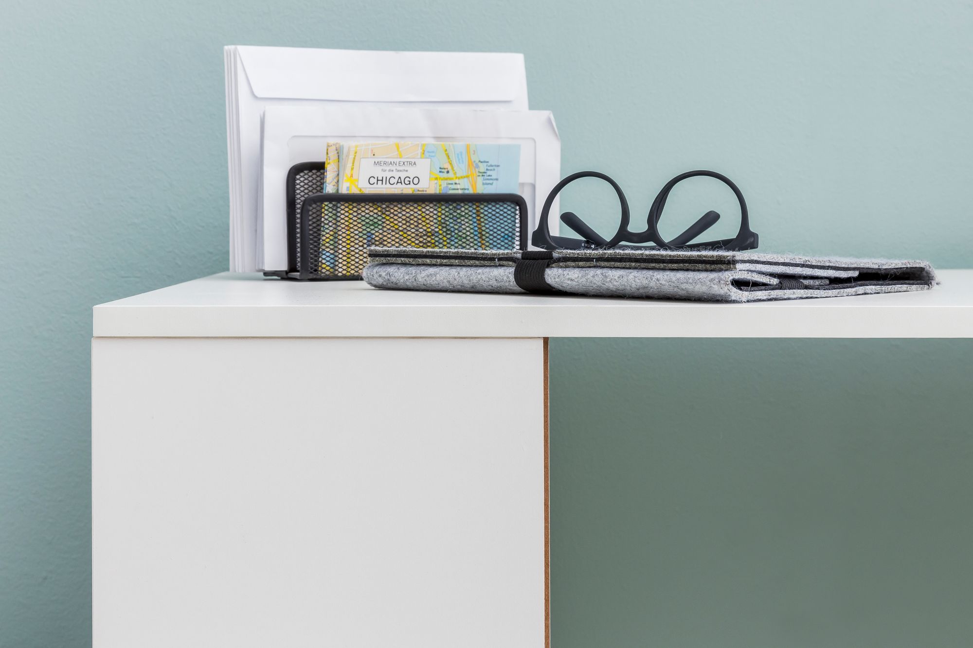 - Platzsparendes Design durch Verbindung von Tisch und Regal